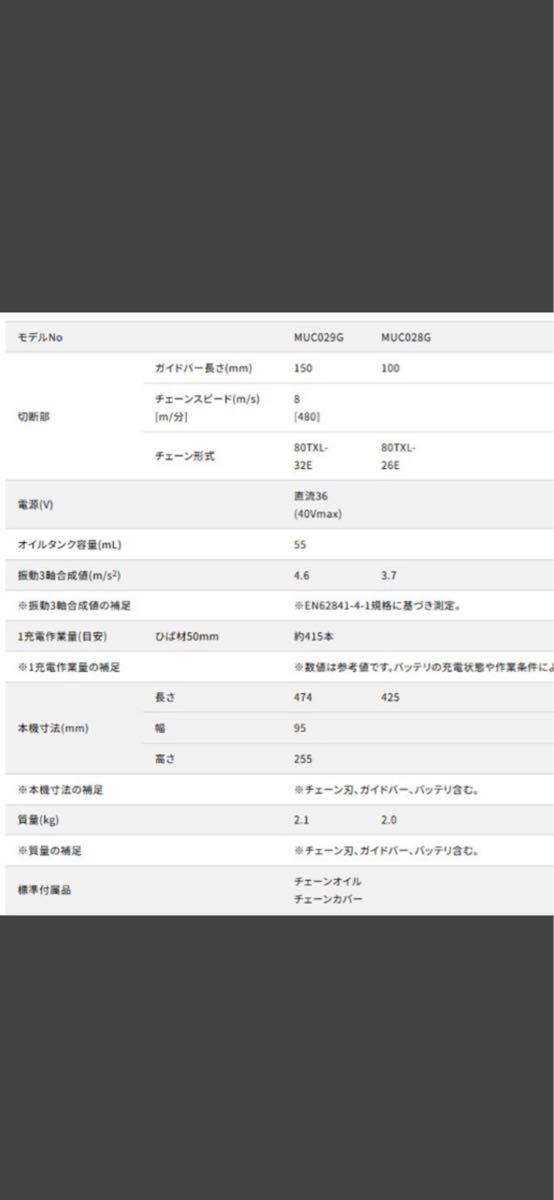 40Vmax 150mm 充電式ハンディソー 本体のみ(バッテリ・充電器別売)MUC029GZ