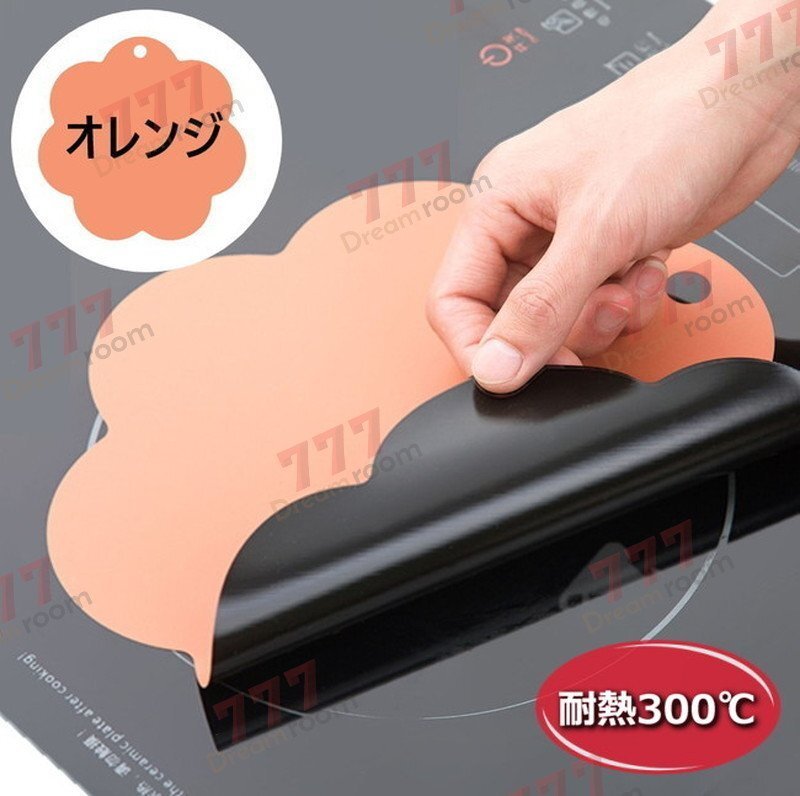 フラワーモチーフ IHヒーター用 ガラス繊維製 焼け焦げ防止 保護カバー 1枚 【D-121 オレンジ】IHマット 汚れ防止シート 耐熱