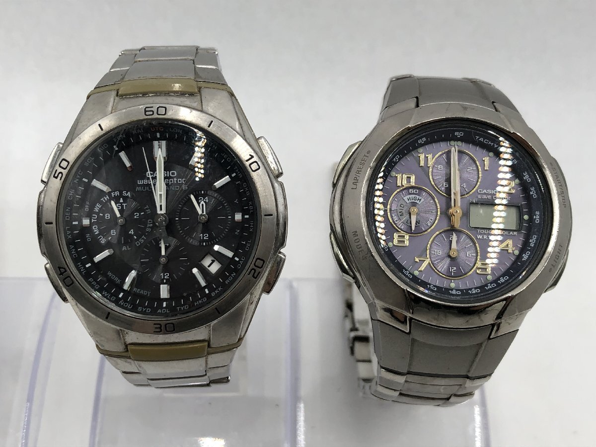 | ■ 【CASIO】waveceptor ブラック/シルバー/ネイビー文字盤色 アナデジ ソーラー式 腕時計4点セット WVA-M600他 まとめ売り 1117 15 ■ |