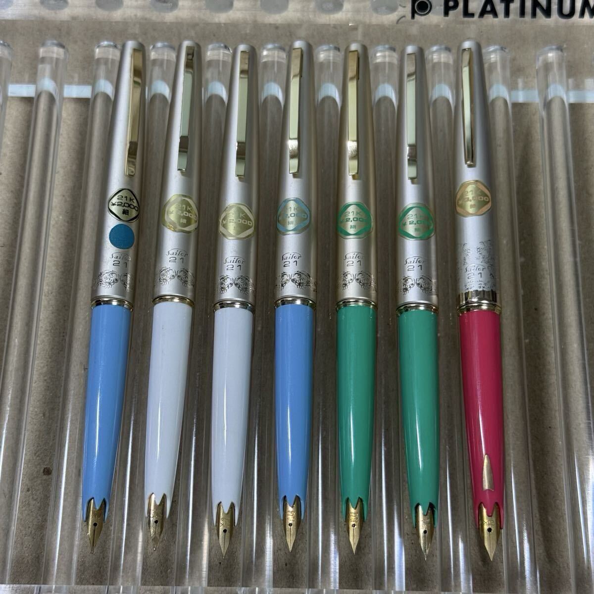 全て一度もインクを通していない新品未使用品です。画像8枚目の真ん中のもののみつけペンとして使用した形跡がありペン先に汚れがあります。長期保管品の為、細かい傷や汚れが付着している場合があります。予めご了承くださいませ。ペン先の太さ、軸の状態(傷、汚れ、シールの有無など)はできる限り画像に載せています。画像をよく見てからご検討頂けますと幸いです。よろしくお願いいたします。
