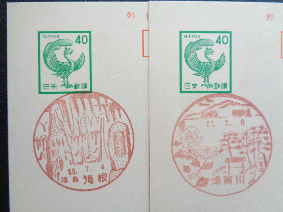 鳳凰はがき    初日印/風景印    福島県2枚     須賀川/S57.3.8    滝根/S59.7.4