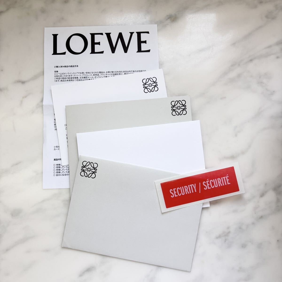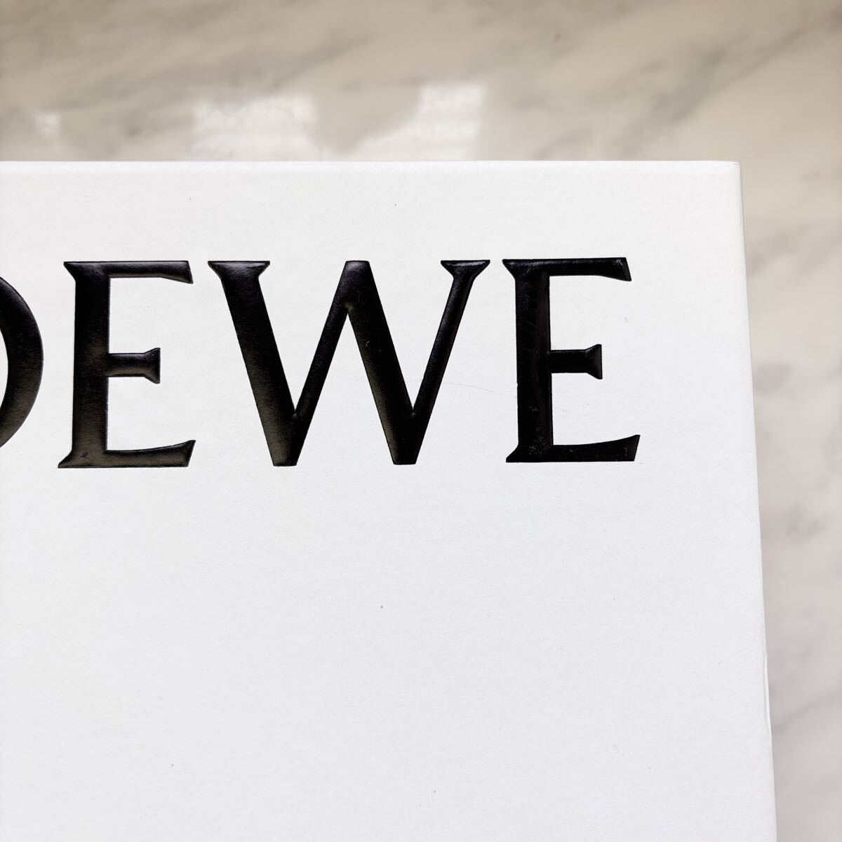 端ににLOEWEアナグラムのエンボス加工入りレザーパッチ
