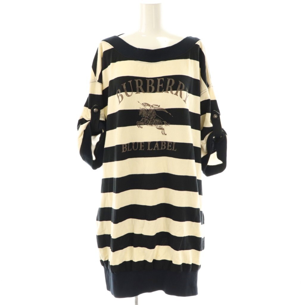 バーバリーブルーレーベル BURBERRY BLUE LABEL チュニック カットソー ボーダー 七分袖 38 アイボリー ブラック /DO ■GY53
