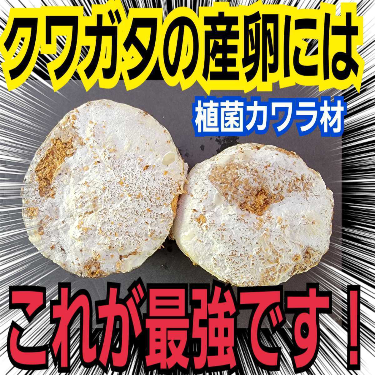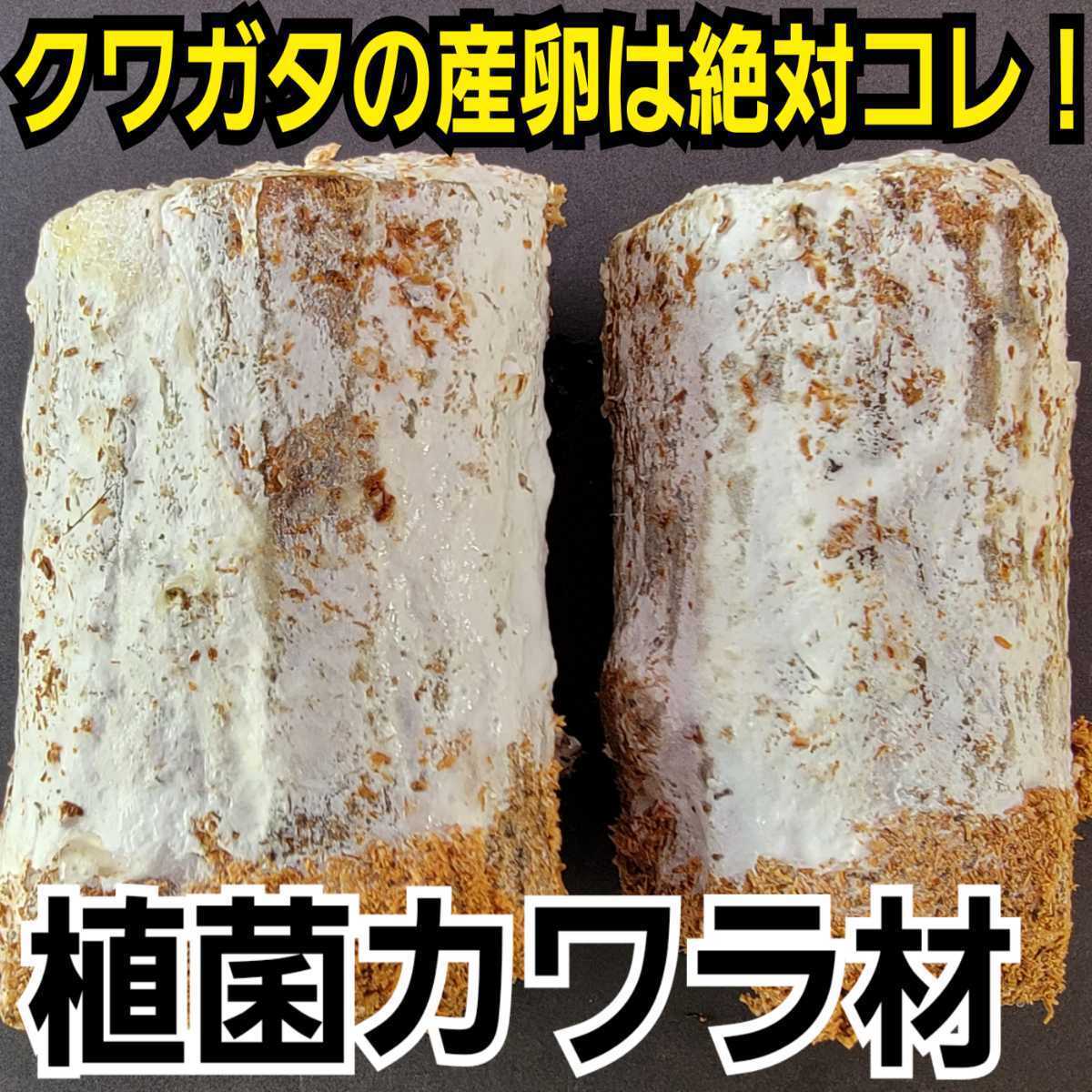 オウゴンオニクワガタ系やタランドゥス、レギウスの産卵に抜群の効果を発揮します。 植菌されているため、普通の産卵木と違い、材がカビることがなく、初心者の方も手軽に利用できます。 加水作業も不要です。 ![]() 長い年月、実験を繰り返し 従来、産卵が非常に困難とされていた、タランドゥス、レギウス、オウゴンオニクワガタの産卵に抜群の効果がある植菌カワラ材を商品化しました。 今やタランドゥス、レギウス、オウゴンオニの産卵でなくてはならないものです。 ![]() さまざまな種類のクワガタや産卵セット方法に対応可能です。 製造過程で高圧滅菌されているため、雑虫の残存も一切ありません。 ![]() 通常の産卵木では産まない種も植菌カワラ材だと産卵したり、考えられない数の幼虫が取れるなど、今やクワガタの産卵には最強のアイテムになっています。 オオクワガタやヒラタも普通の産卵木とは比べ物にならないほど産卵数がアップします。 セット方法は樹皮を剥がしてマットに埋めるだけです。 材を埋め込む良質な発酵マットも販売してますのでご希望でしたら同梱発送もできます。