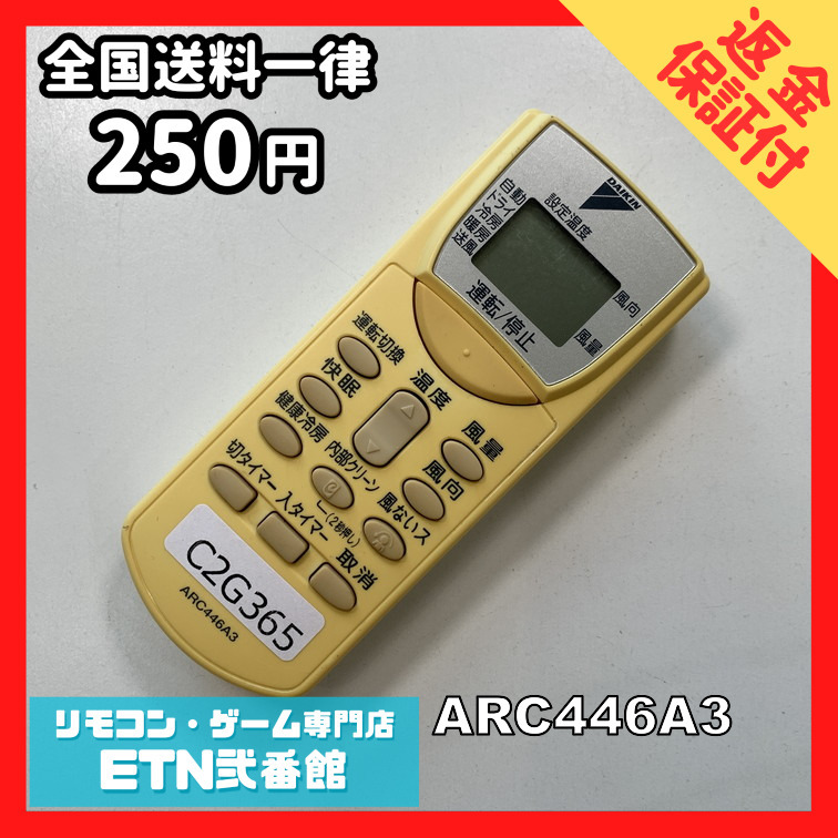 C2G365 【送料250円】エアコン リモコン / Daikin ダイキン ARC446A3 冷房 暖房 動作確認済み★即発送★