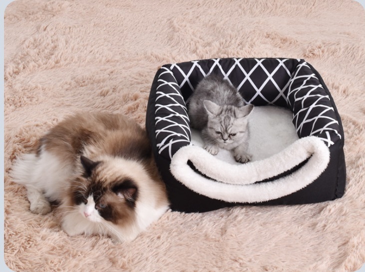 冬 猫 ベッドハウス 犬小屋 ネスト ペット クローズド 暖かい ソファ クッション