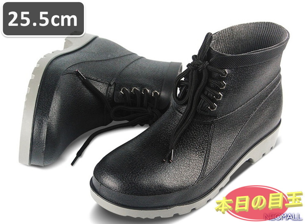 1スタ ☆【483】メンズ レインシューズ ブラック 25.5cm オシャレ ショートブーツ シンプル 梅雨 雨 長靴 雨靴 防水