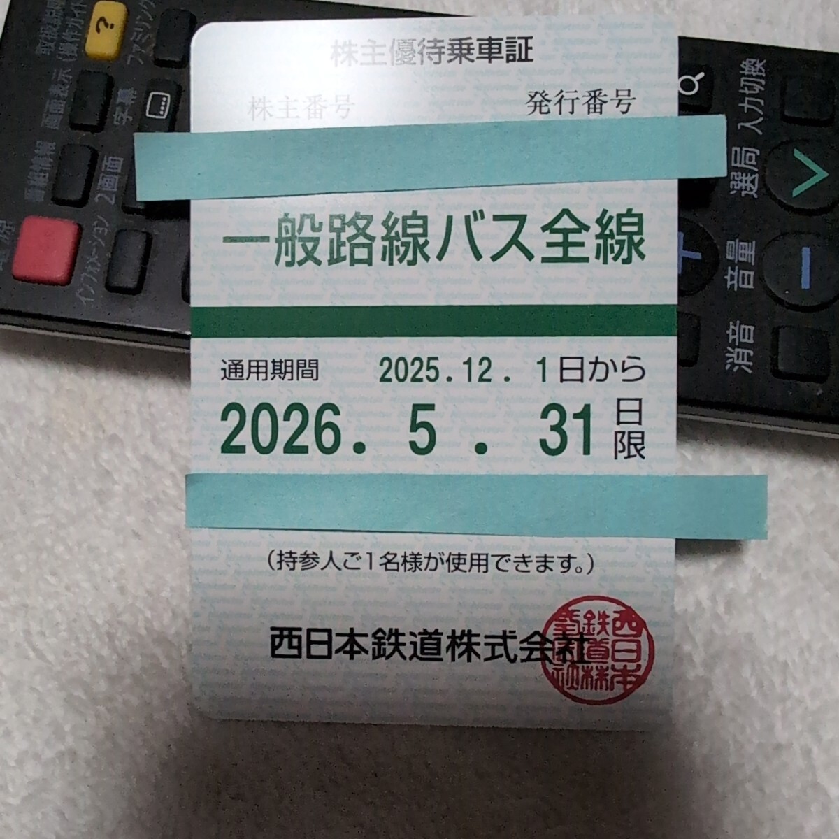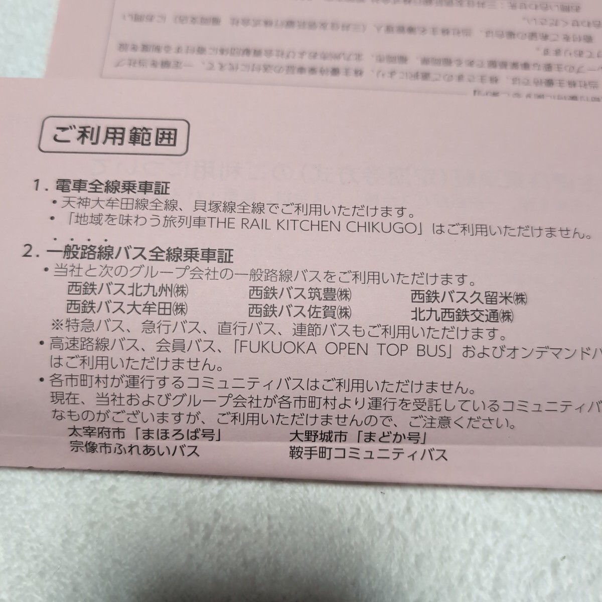 西鉄 一般路線バス全線※株主優待乗車2025/12/1~2026/5/31迄有効