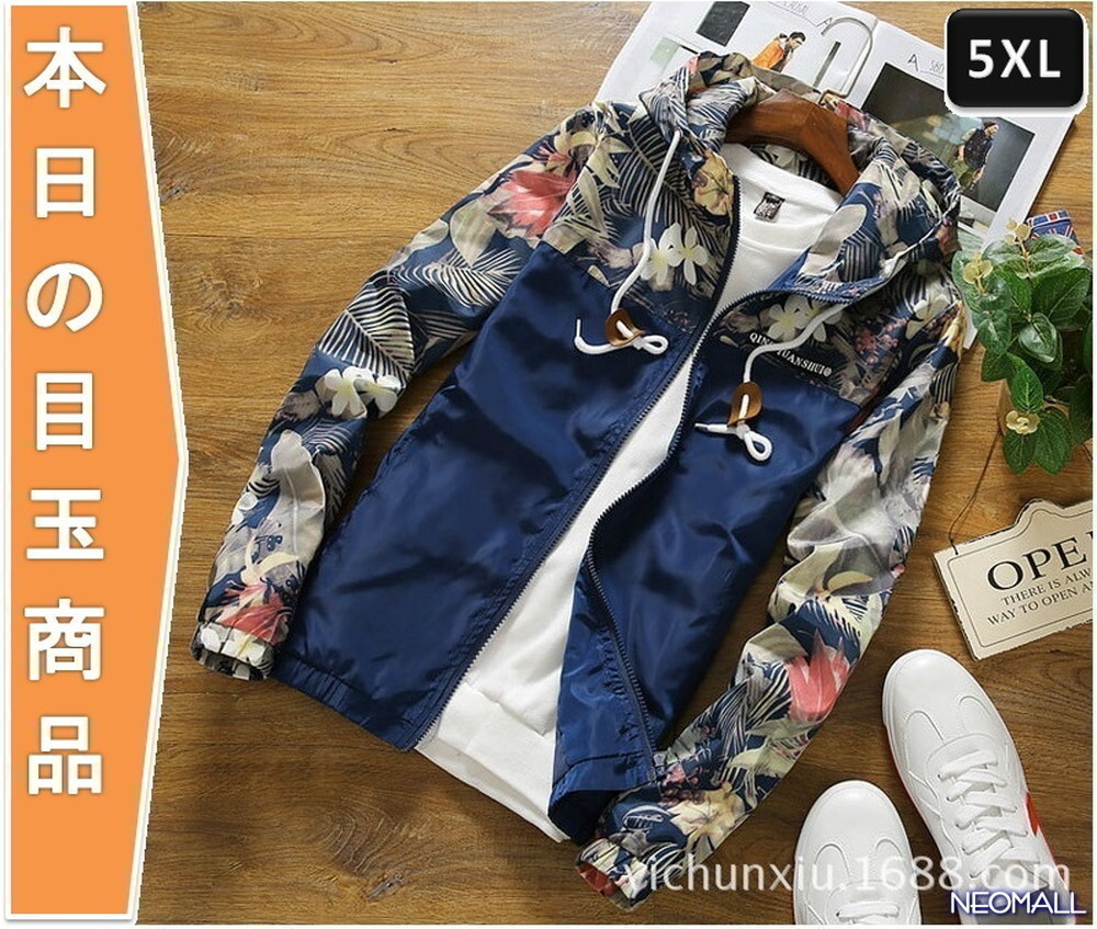 本日の目玉 【297】 ウィンドブレーカー フード付き ネイビー 5XL メンズ ナイロン カモフラ 柄 アウトドア 防風 軽量 ジャケット