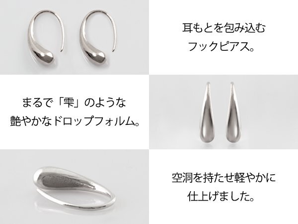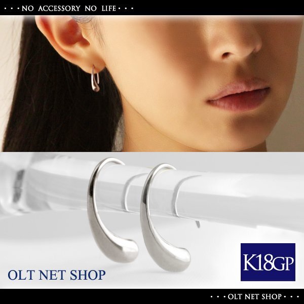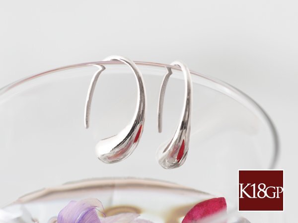 550円スタート/新品/ピアス/K18GP/ドロップ/雫/フック/シルバー/18金/ホワイトゴールド/レディース/両耳/シンプル/しずく/メタル/上品/女性