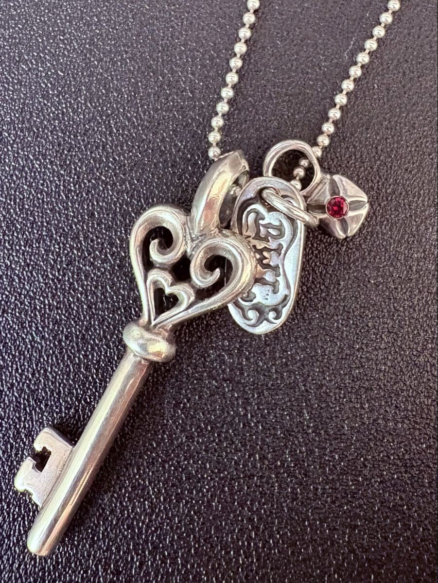 希少ハートキーペンダント×ロゴプレート× ゴシッククロスチャームinルビー3点セット