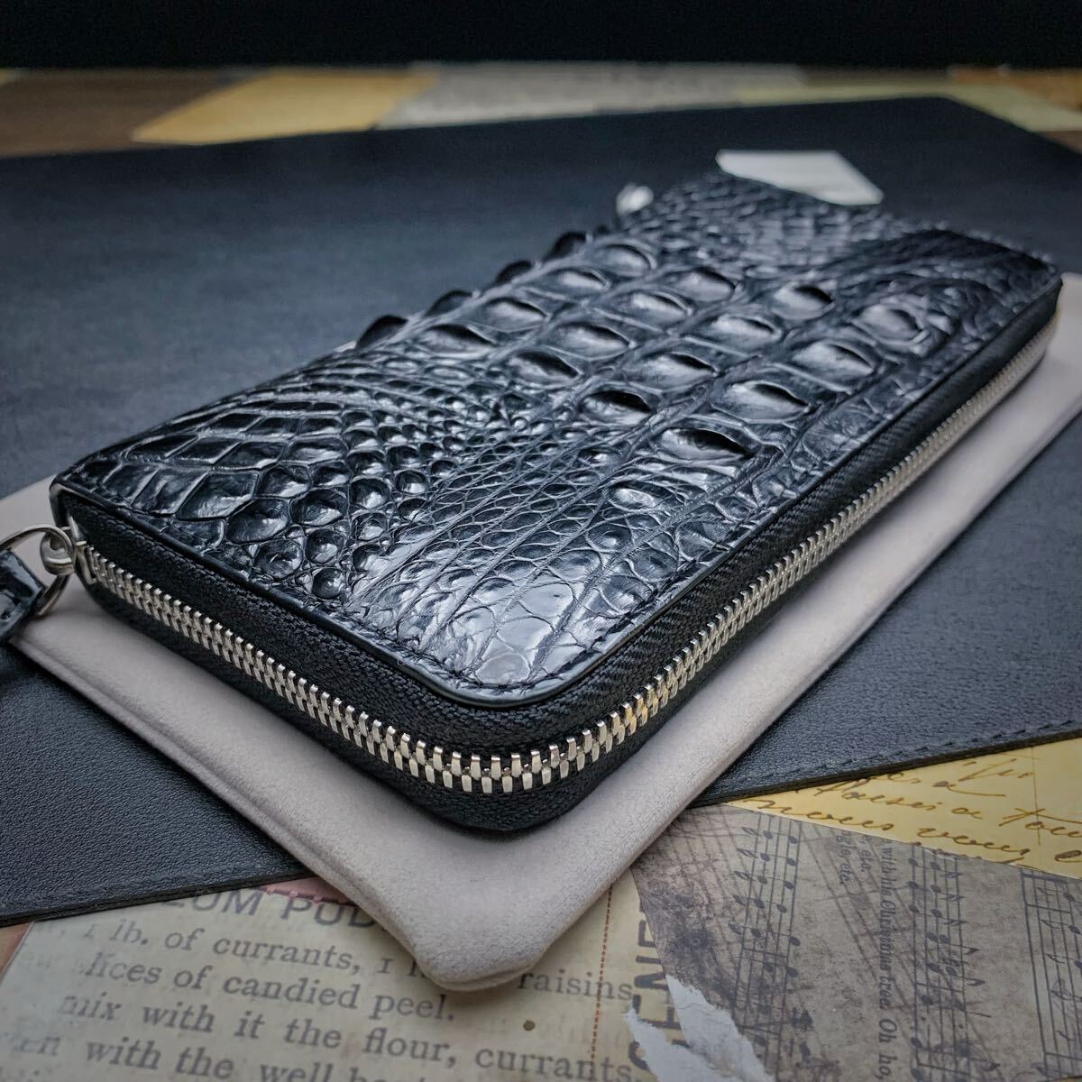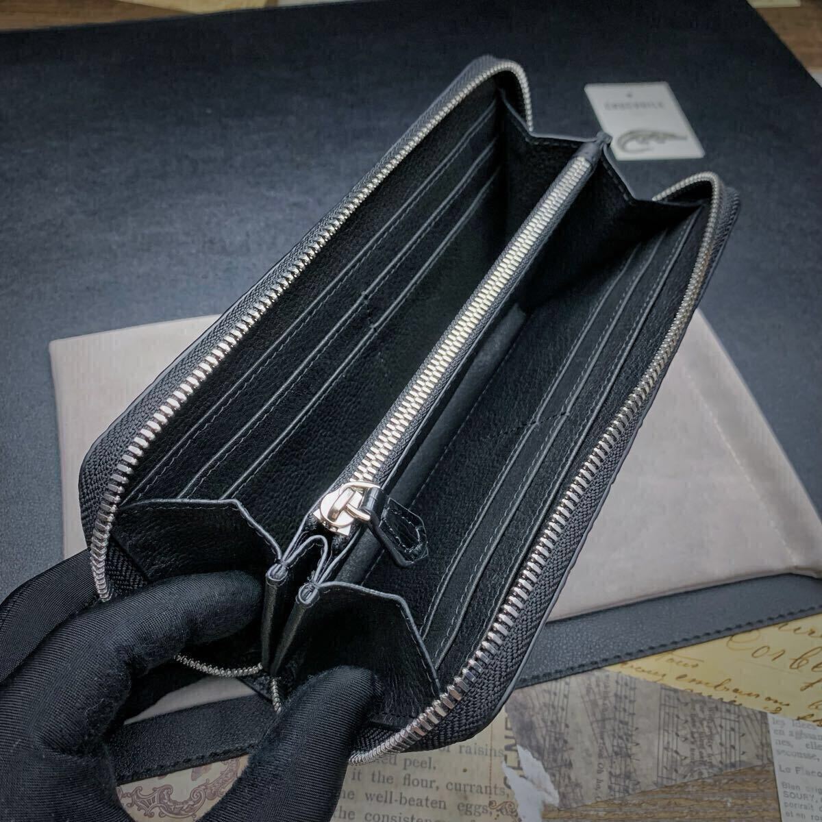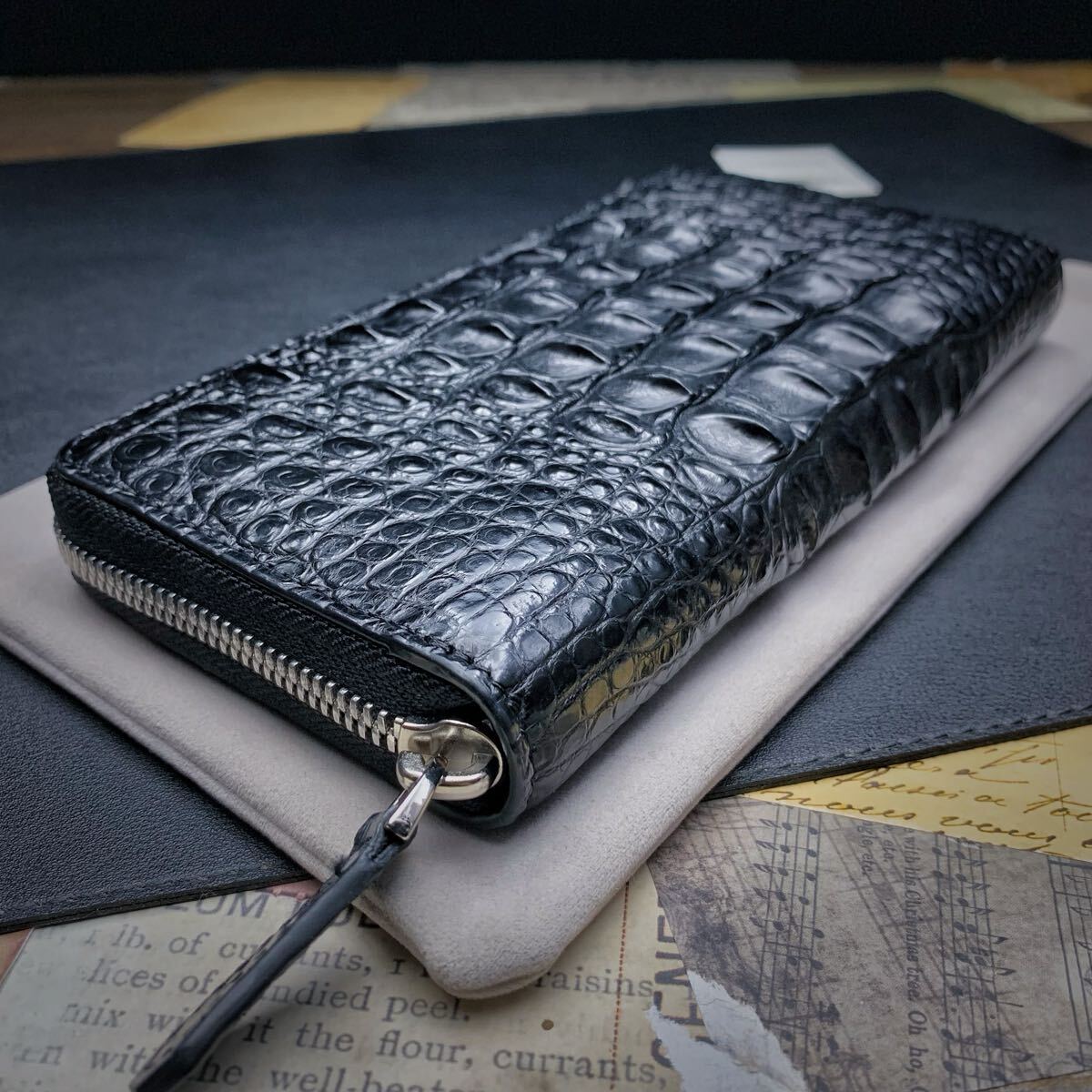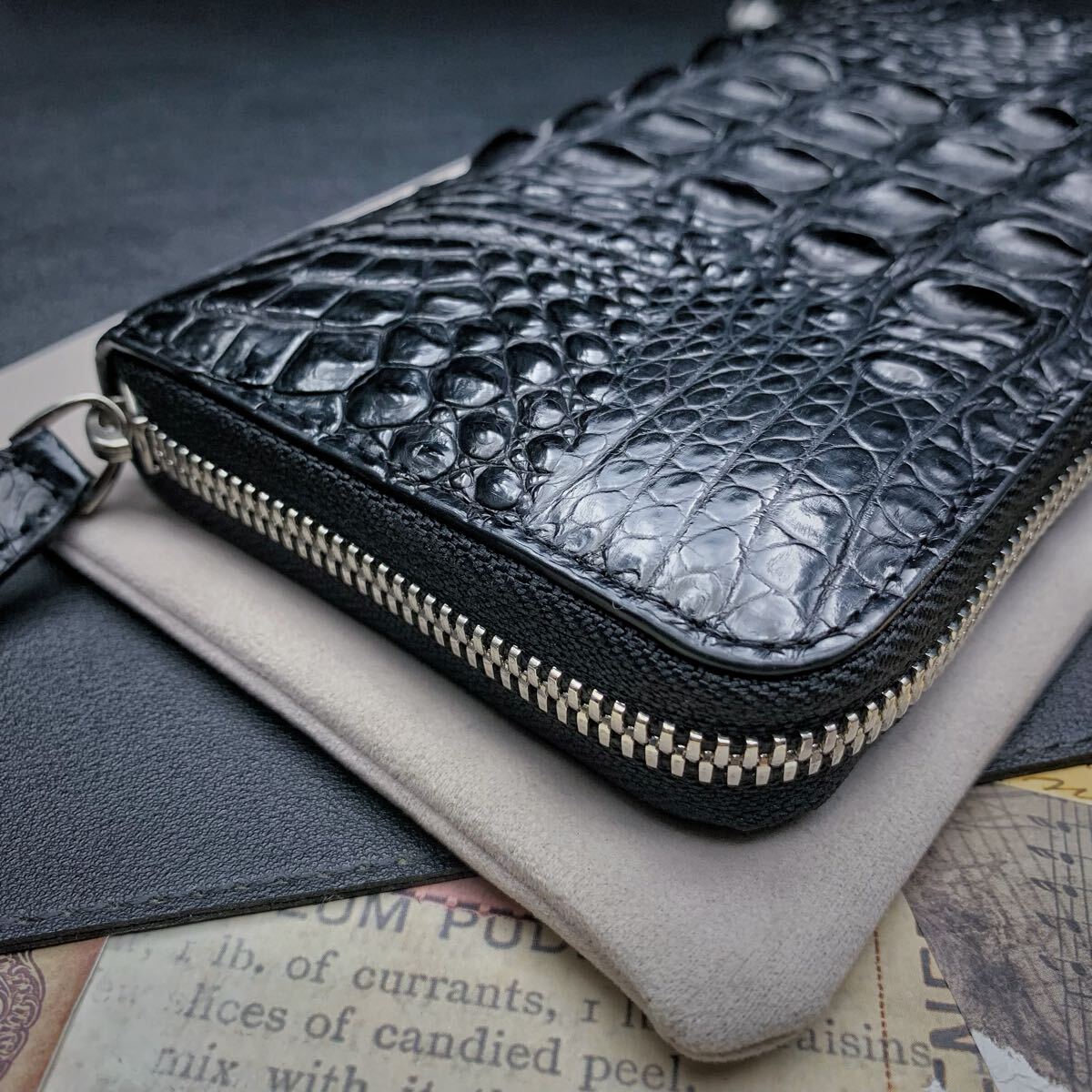 ・クロコダイルと呼ばれている品種のワニ革は人気が高く、独特の模様と凹凸が魅力で、高級ブランド品を中心にクロコダイルが多く使われています。今回はワニ革の代表格である『シャムクロコダイル』のセンターカット背中革のラウンドファスナー財布を出品します。