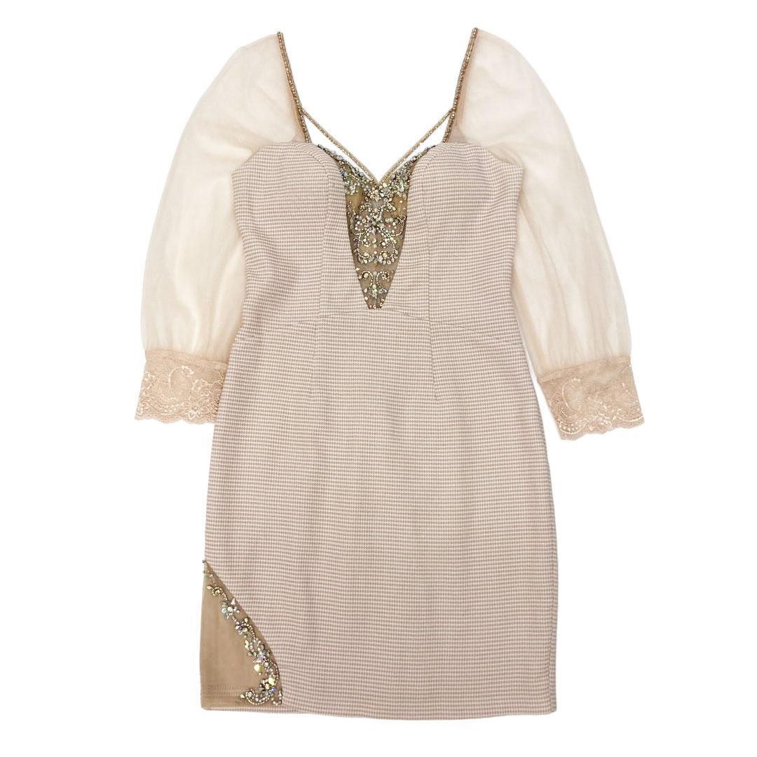 繊細なフロントビジューがリッチな輝きを放つタイトミニドレス。