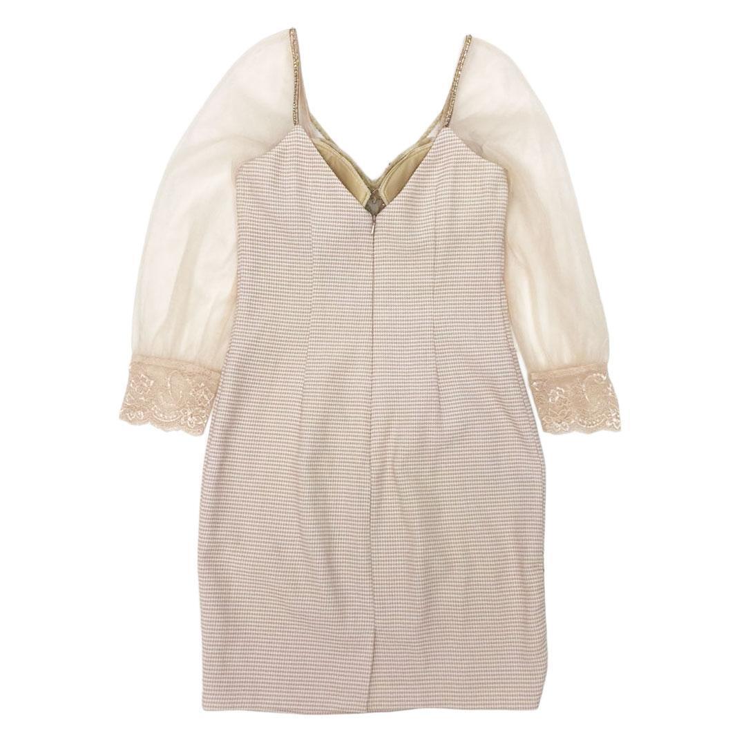 バストメッシュビジューシースルーロングスリーブタイトミニドレス