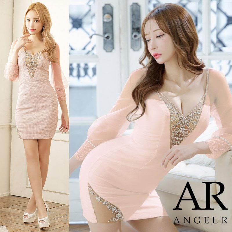 AngelR エンジェルアール バストメッシュビジューシースルーロングスリーブタイトミニドレス