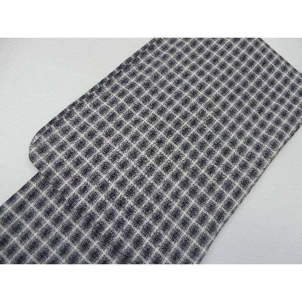 012 新品浴衣 男 黒地に格子柄 仕立て上 身長170位まで