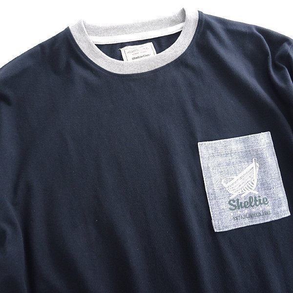 【Sheltie Club】 〈湘南の海〉をテーマとしたブランドコンセプトに沿って、マリンテイストを味付けしたシンプルなスタイルを信条とし、ラフで、気取らず、気張らない、ややゆったりとした着こなしを提案します。 マリンな雰囲気を印象付けるボートをデザインした、デニムライクな生地のポケットがデザインのポイントです。 コットン100%の素材を使用しているので、肌触りが滑らかで心地良く、吸汗性やストレッチ性にも優れた、快適な着心地の一枚。 この他にも、左袖にブランドネームタグ、左裾の側面に骨をモチーフとしたビスを装飾しており、細部にまでこだわった仕上がりとなっています。 |