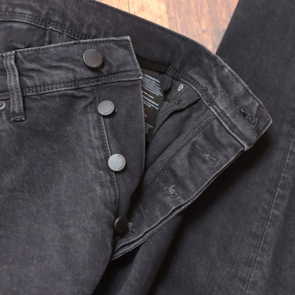 深みのあるウォッシュブラックデニムを使用し、落ち着いたトーンながらも、こなれ感のあるムードを演出。カジュアルからスマートなスタイルまで、幅広いコーディネートに馴染む一本です。