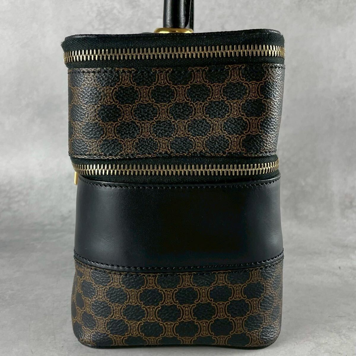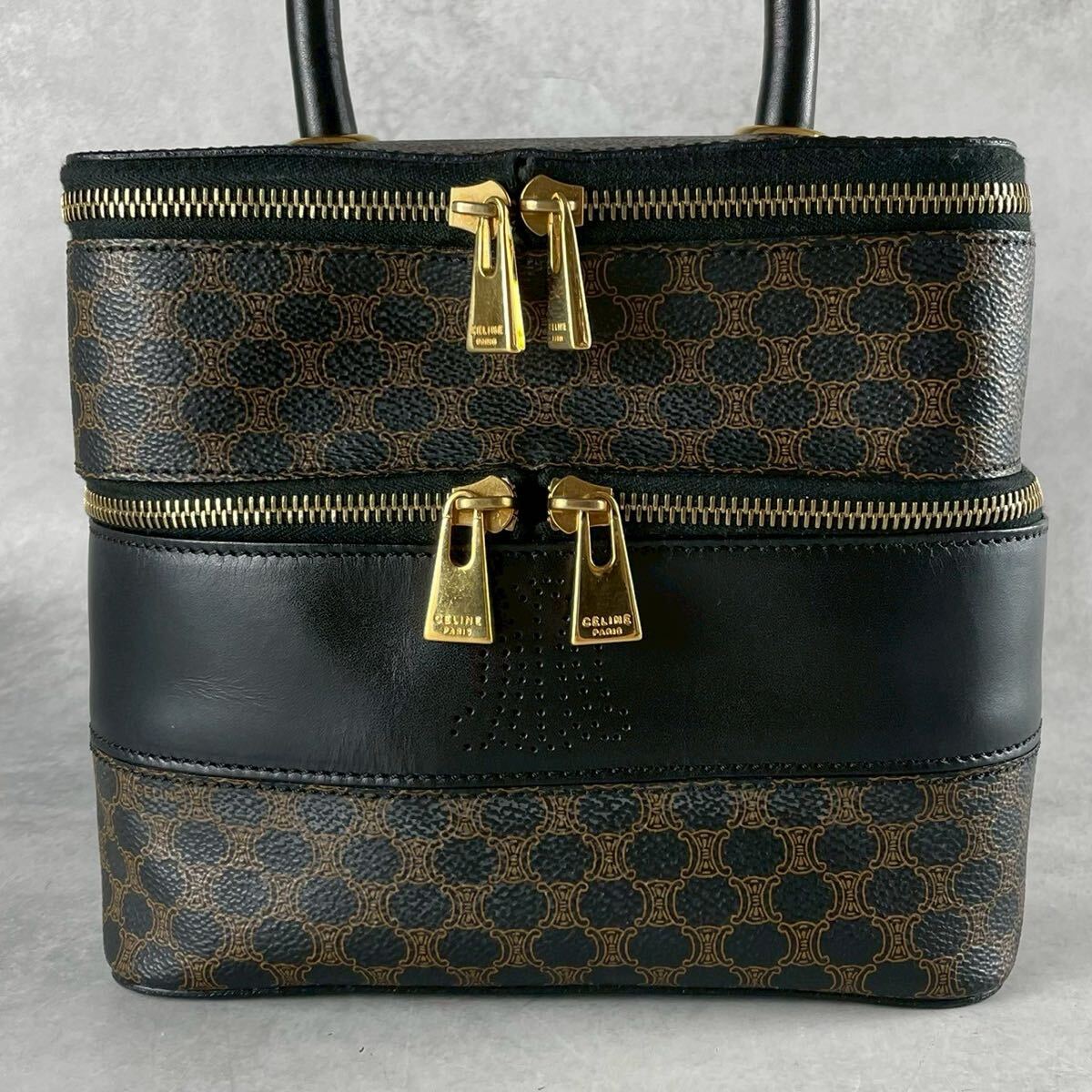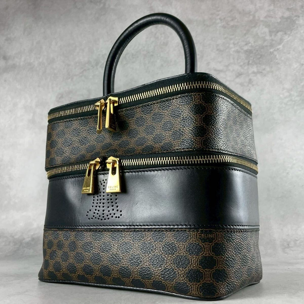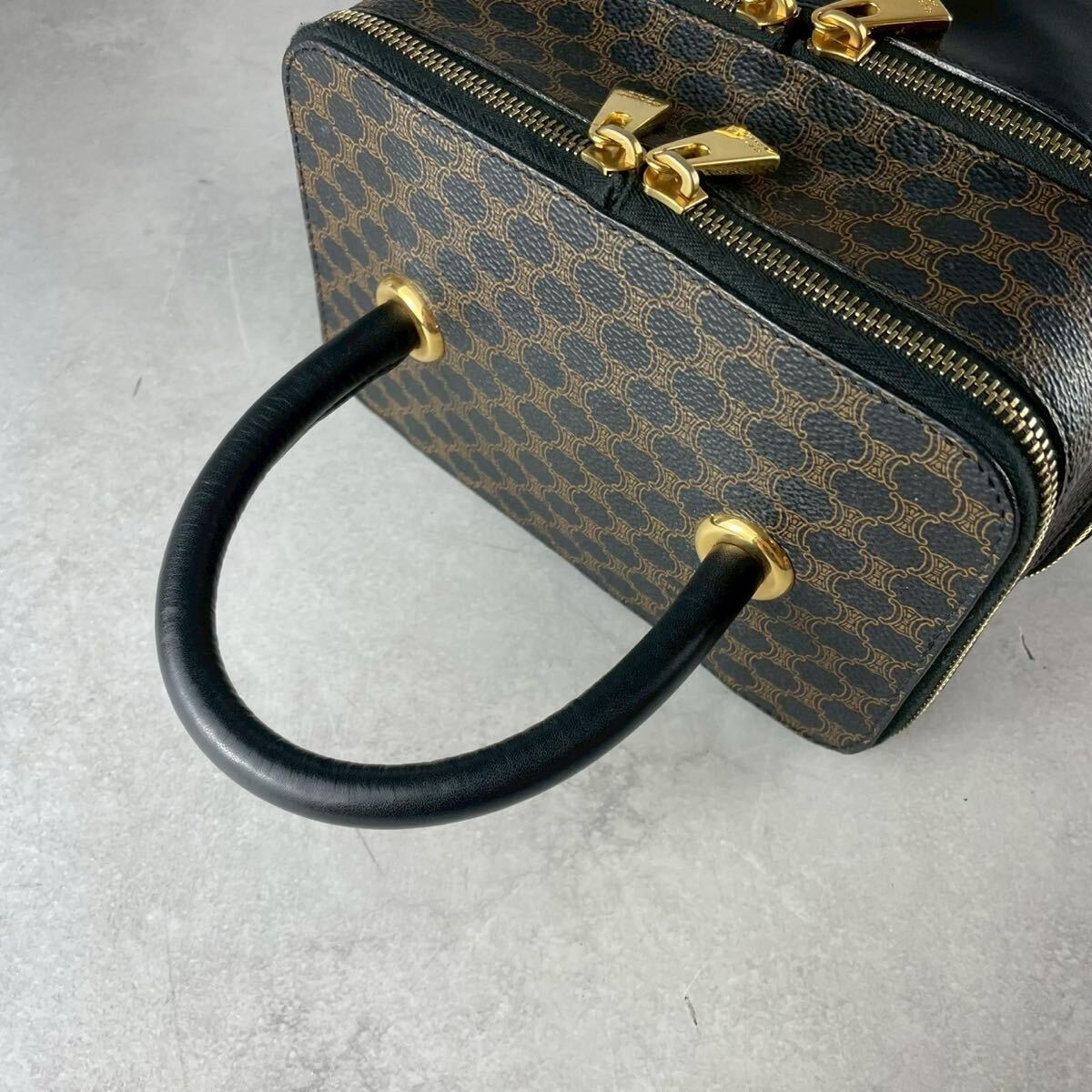 バニティバッグ ハンドバッグ 黒マカダム ブラゾン トリオンフ パンチング ミニバッグ ポーチ 2段 2室 ゴールド金具 イタリア製 MC97/2