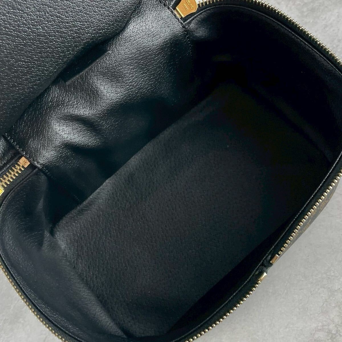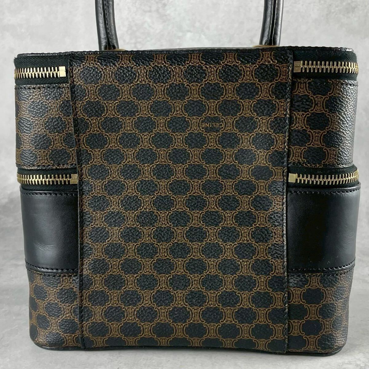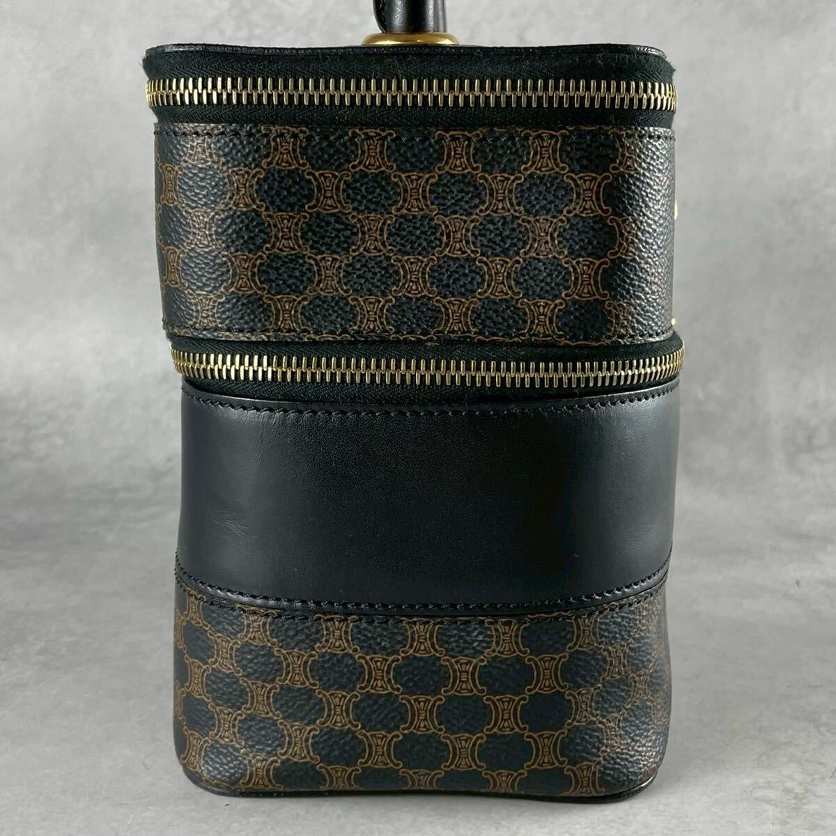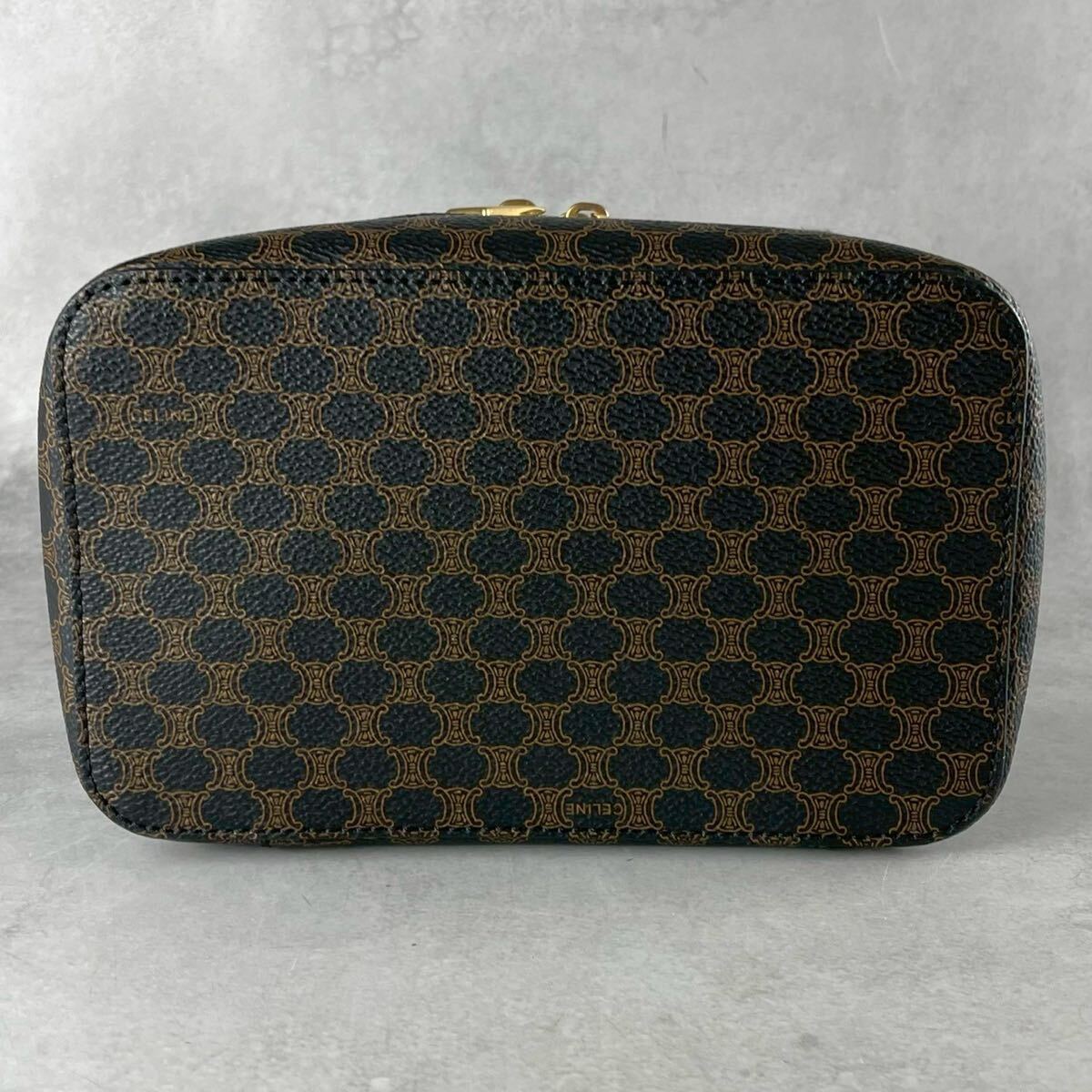 バニティバッグ ハンドバッグ 黒マカダム ブラゾン トリオンフ パンチング ミニバッグ ポーチ 2段 2室 ゴールド金具 イタリア製 MC97/2