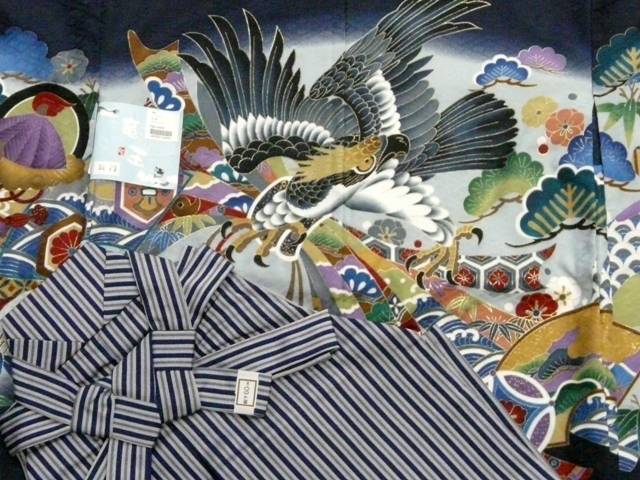 七五三 男児 五才 祝着 10点フルセット 紺 鷹 037