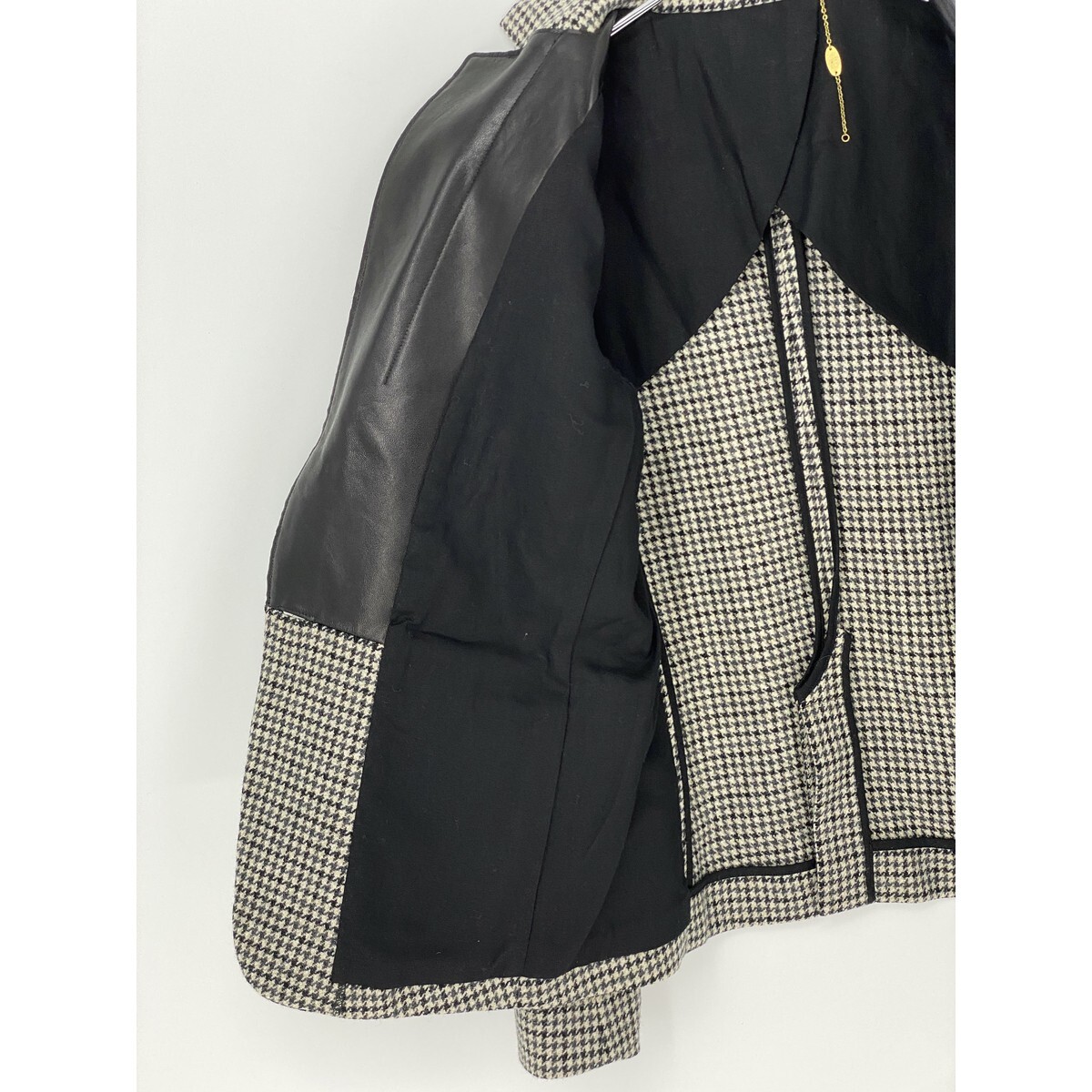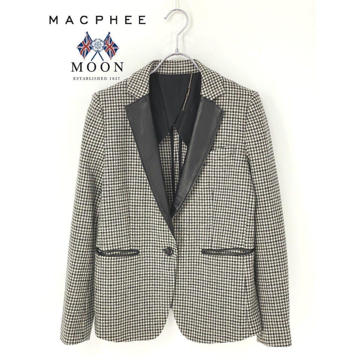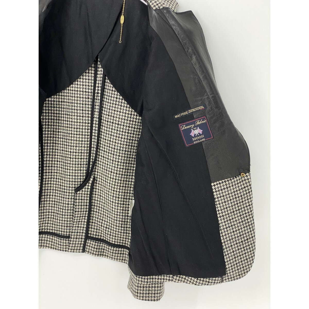 A9700/極美品 春夏 MACPHEE マカフィー トゥモローランド MOON ウール 羊革 ラムレザー 千鳥格子 テーラード ジャケットM程38黒 レディース