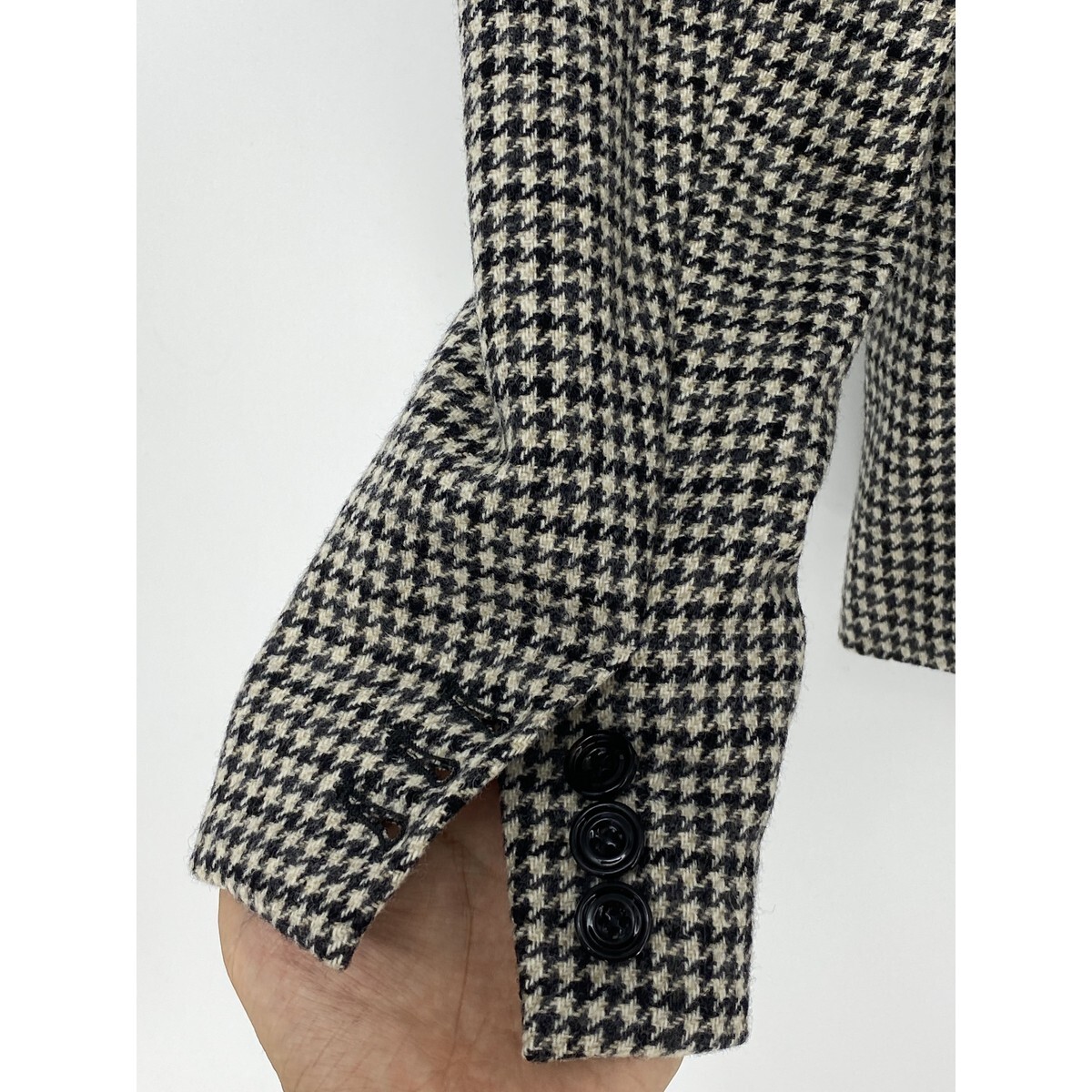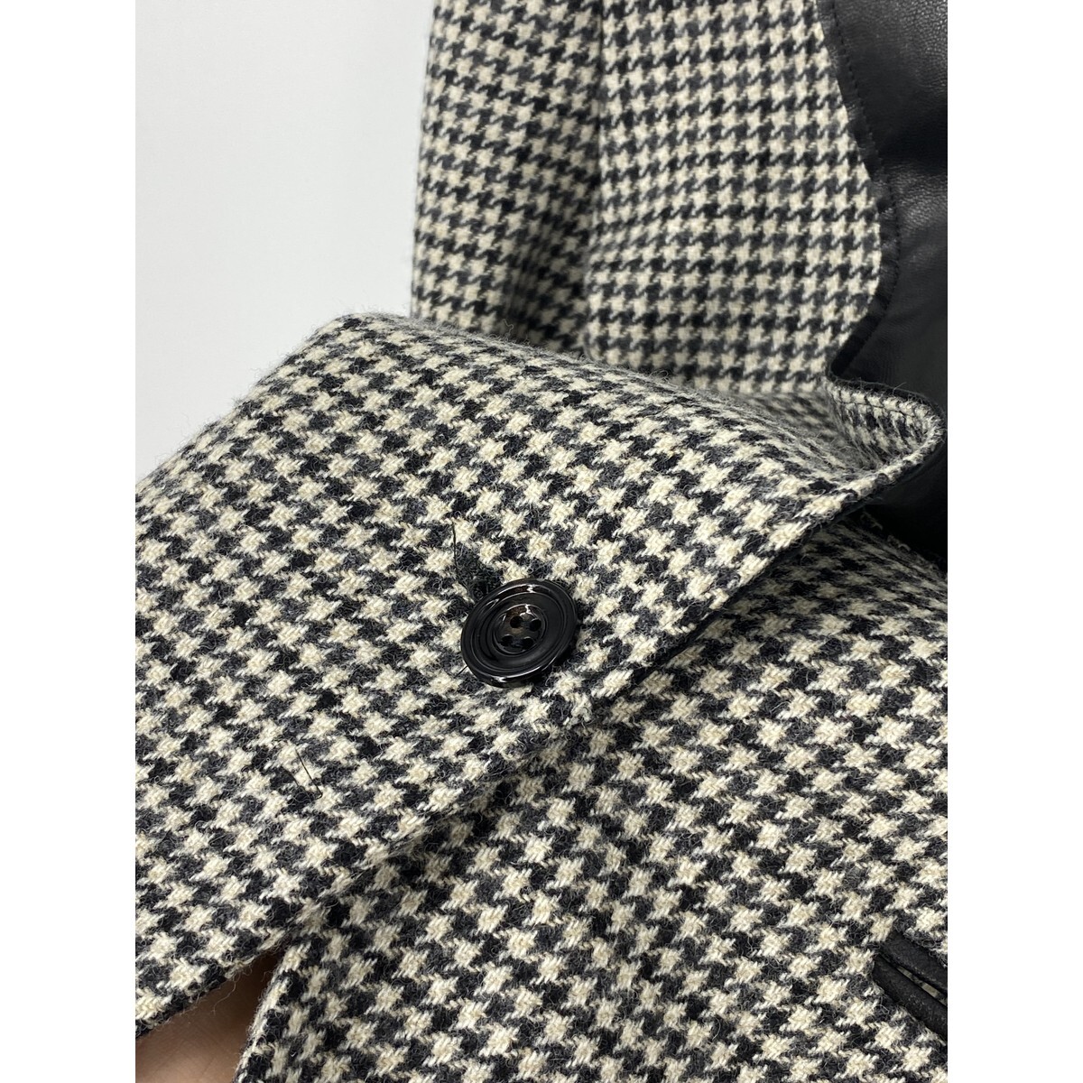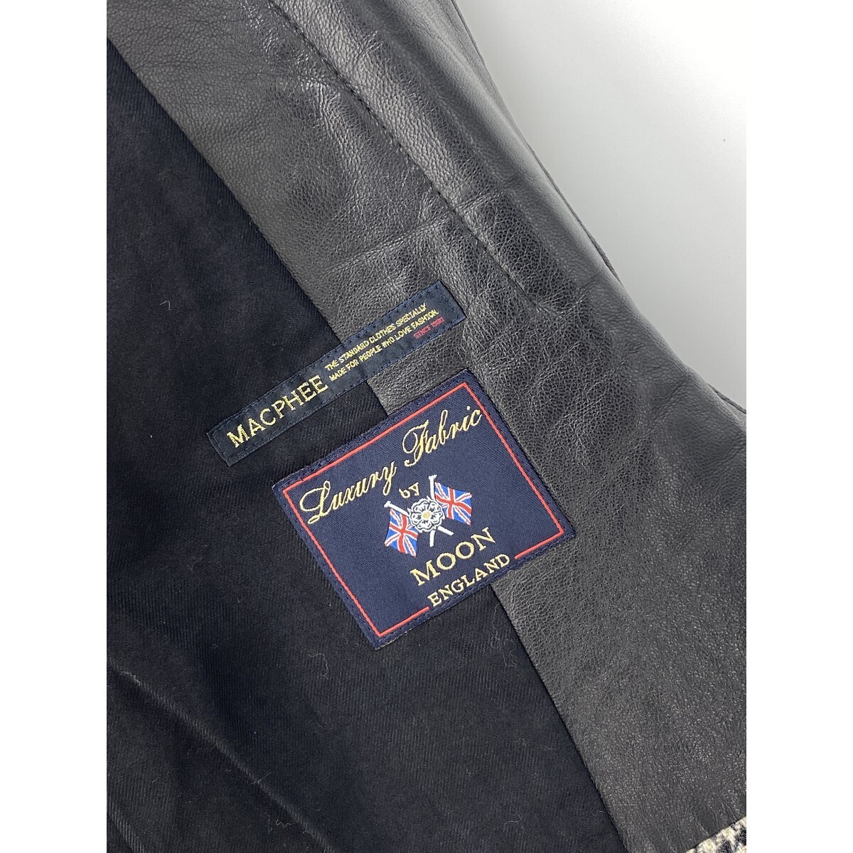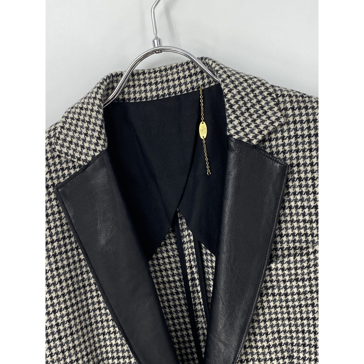 A9700/極美品 春夏 MACPHEE マカフィー トゥモローランド MOON ウール 羊革 ラムレザー 千鳥格子 テーラード ジャケットM程38黒 レディース