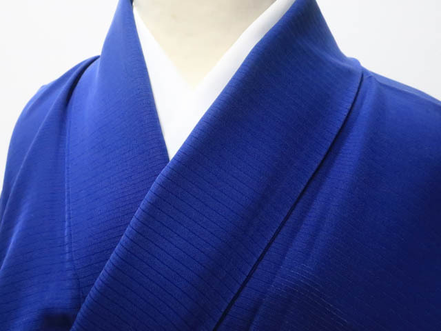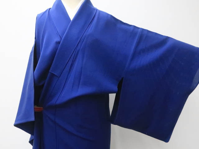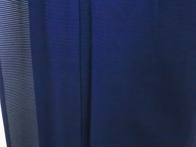 リサイクル商品のため、衿・両脇付近に薄汚れがございますが着用可能なお品です。 地色は 紺です。 1枚目の画像が近いお色かと思われます。 素材は正絹です。 |