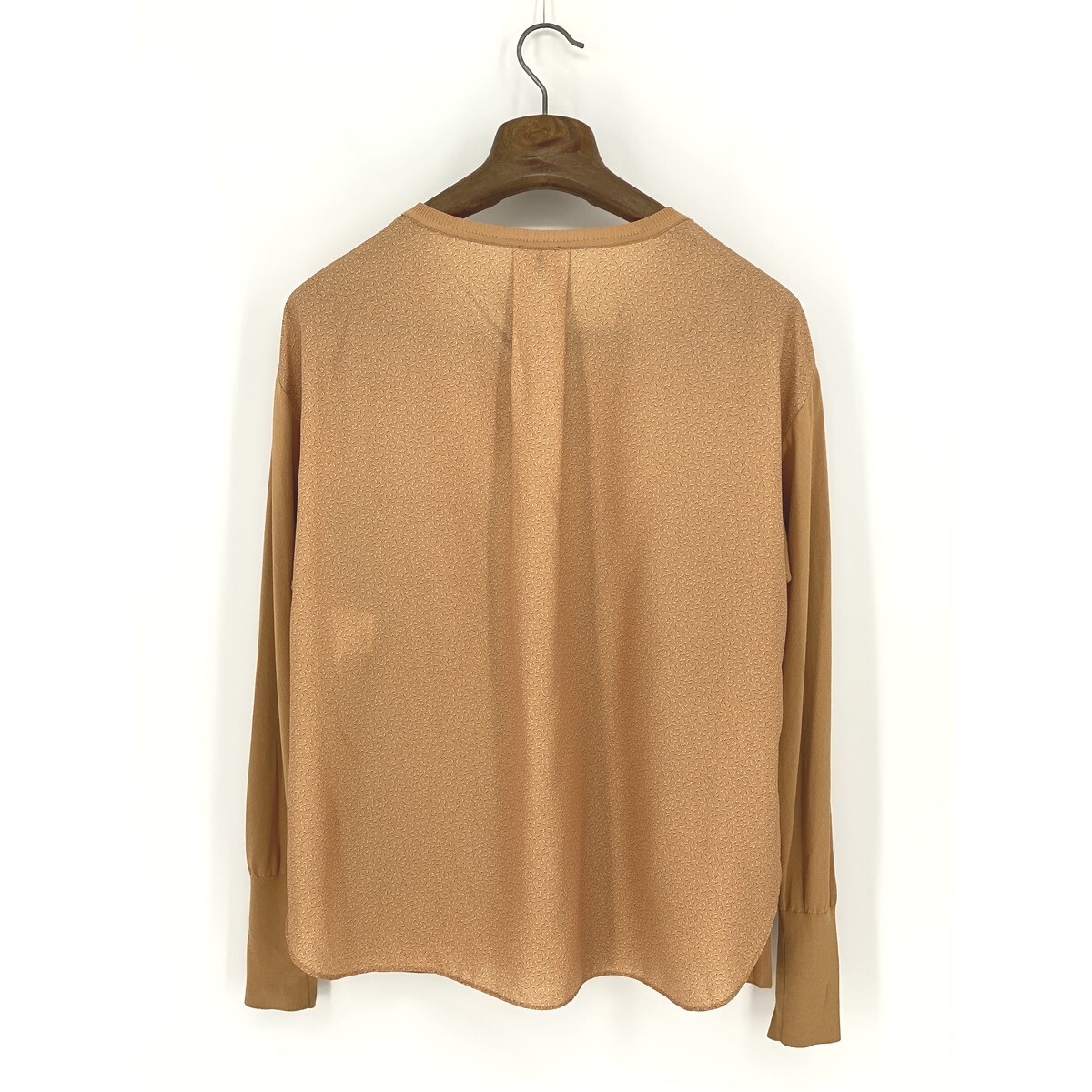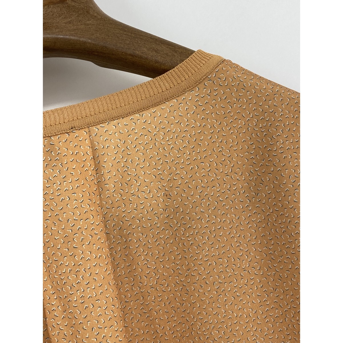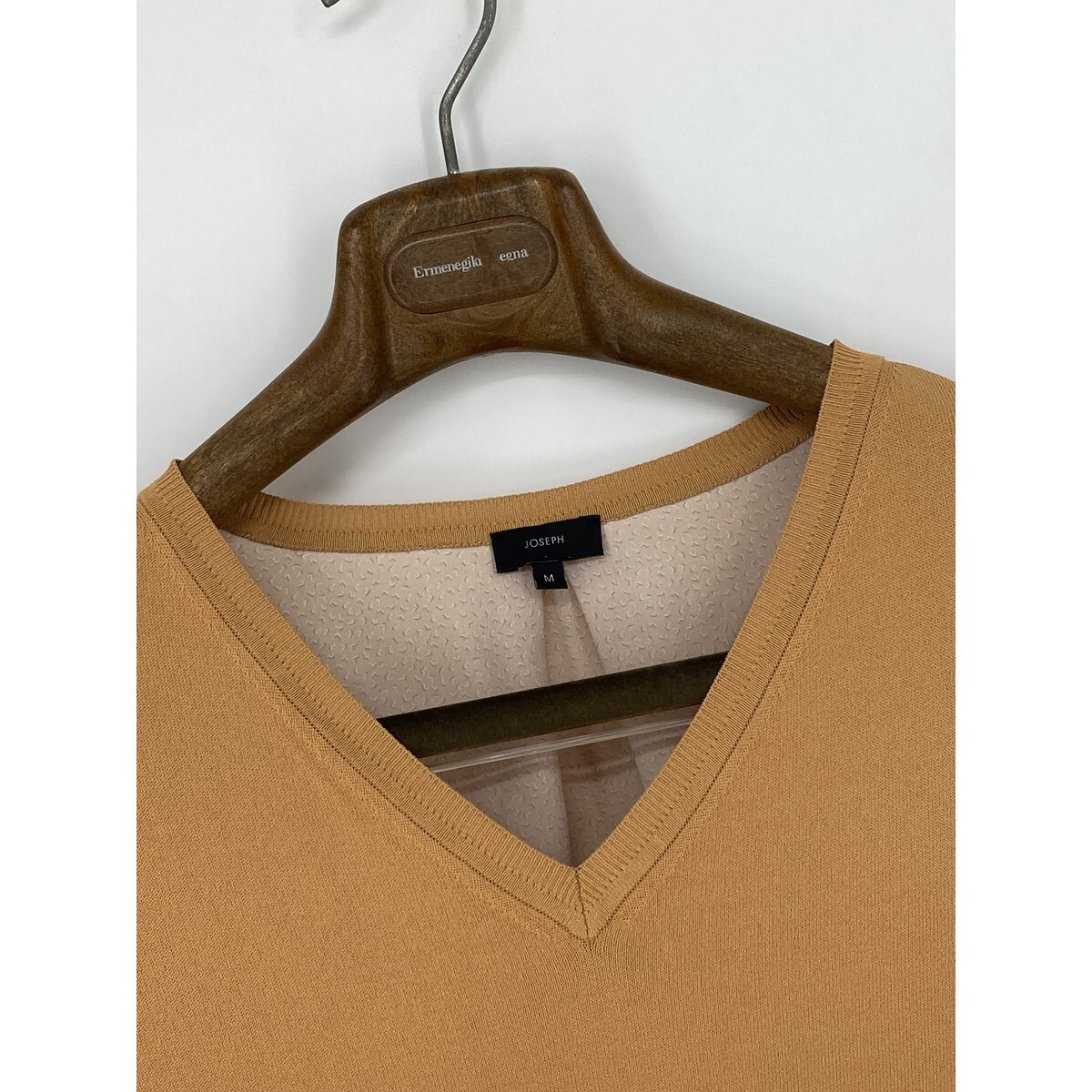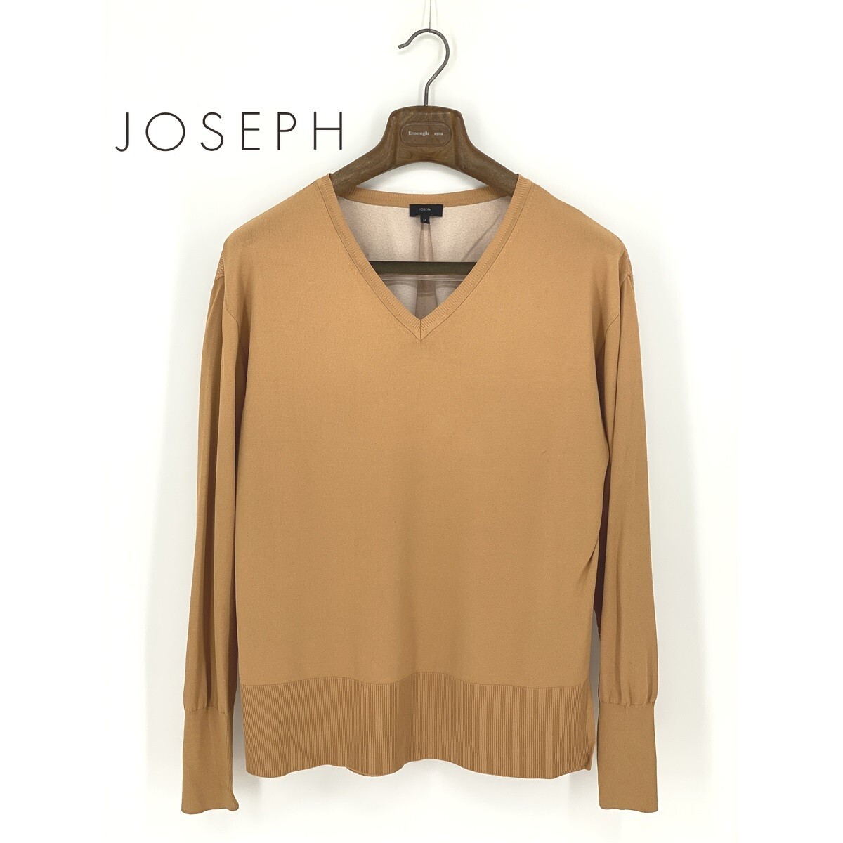 B0778/美品 22ss JOSEPH ジョセフ レーヨン 総柄 切り替え デザイン Vネック 長袖 ニット リブ セーター M オレンジ メンズ カーディガン