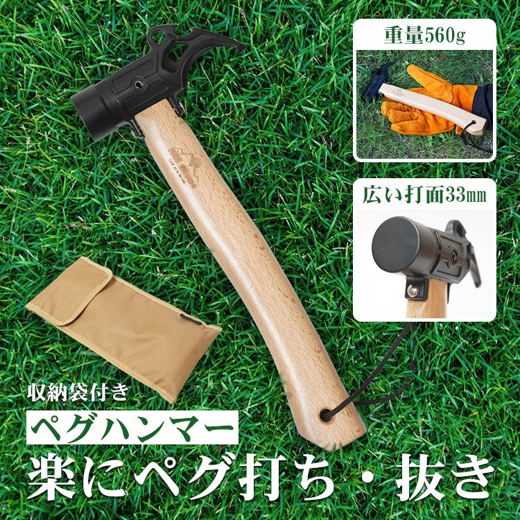 送料無料 ペグハンマー 小型 軽量 安全ストラップ付 ペグ抜き ペグ打ち 収納袋付き トンカチ アウトドア テントハンマー テント設営 od647