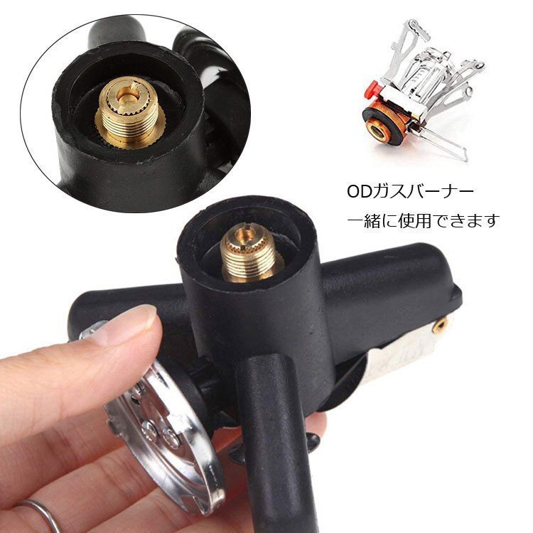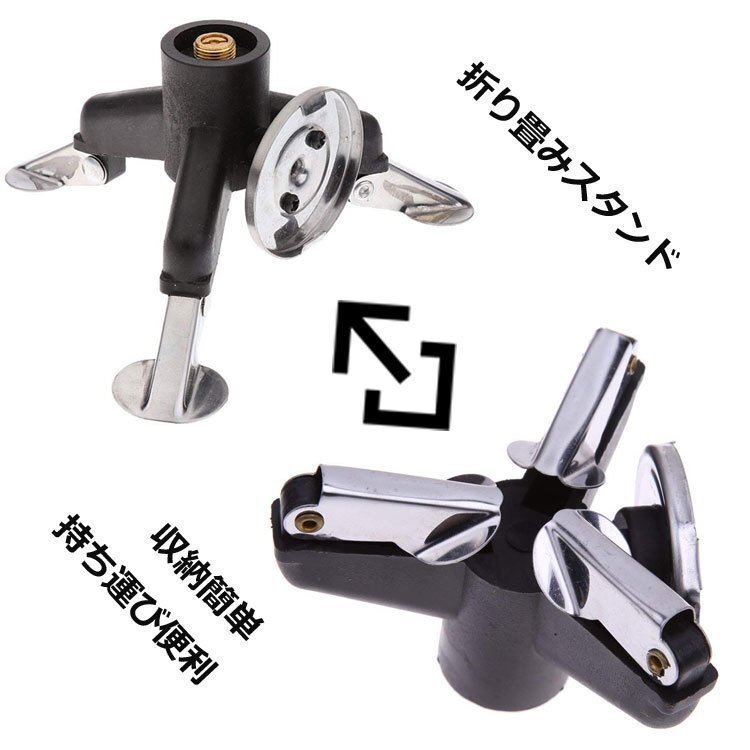 ◆ガスバーナー変換アダプター スタンド カセットガス アダプター 転倒防止 タンクコネクター OD缶用器具をCB缶に BBQ/キャンプなどに 三脚スタンド式OD→CBスタンド AT6345