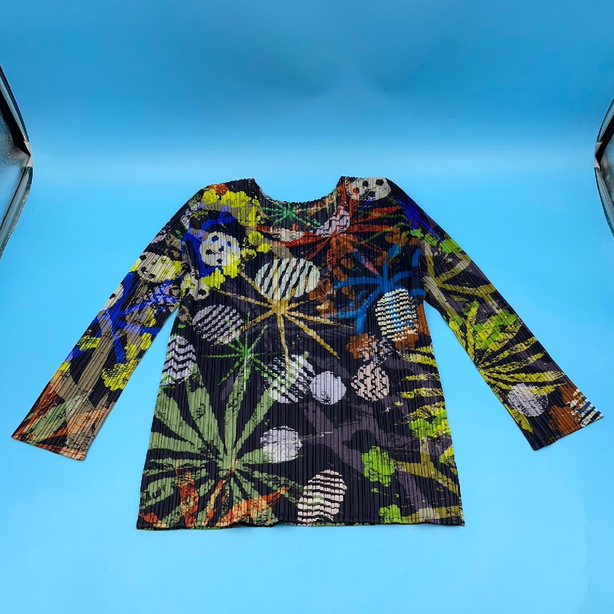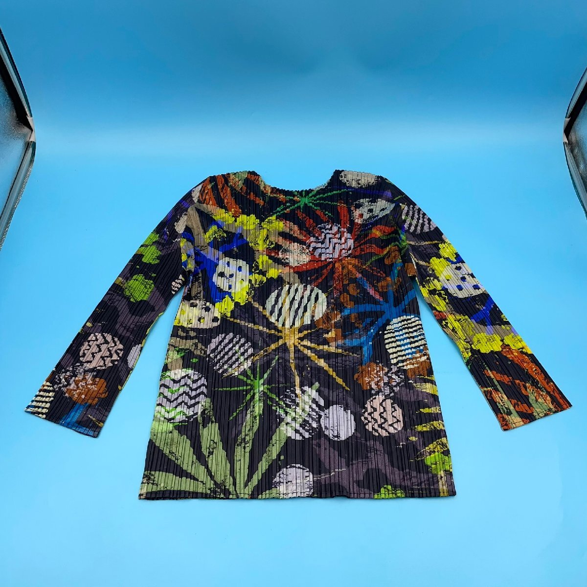 【20842Q084】カットソー PLEATS PLEASE プリーツプリーズ イッセイミヤケ 長袖 サイズ:3 カラフル 総柄 柄物 ストリート おしゃれ