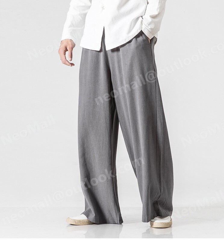 お買い得☆メンズ ワイドパンツ グレー 2XL カジュアル ロングパンツ スウェット 無地 ポケット付 オールシーズン【064】