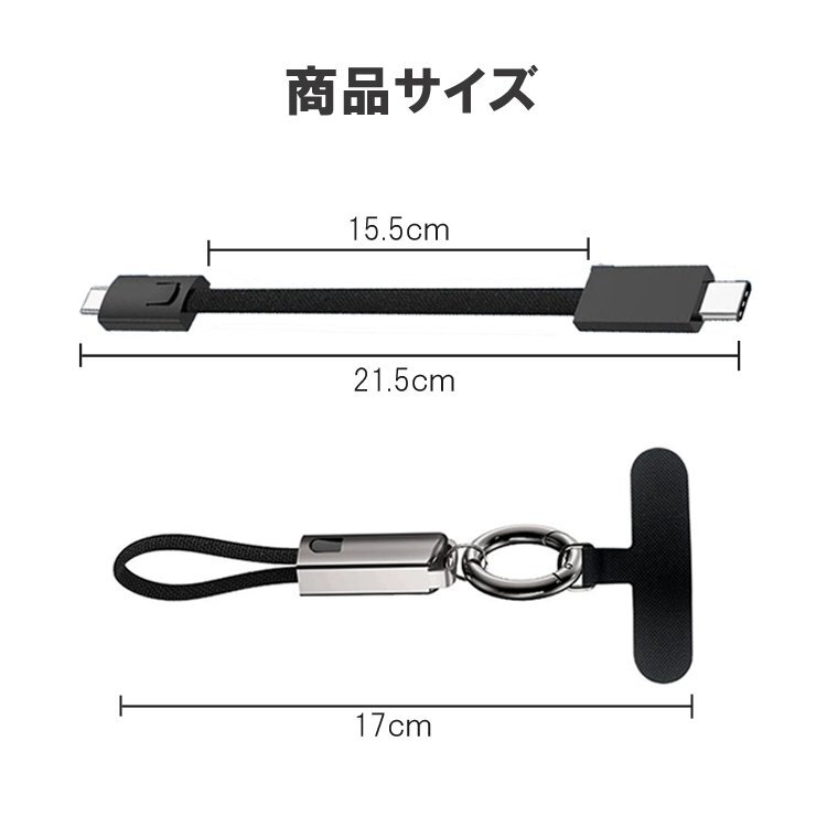 ◆Type-Cケーブル キーホルダー PD65W 急速充電対応 Type-C to Type-C スマホストラップホルダー付き 携帯便利 ストラップ PD対応ケーブル iPhone17対応充電ケーブル TTC65W