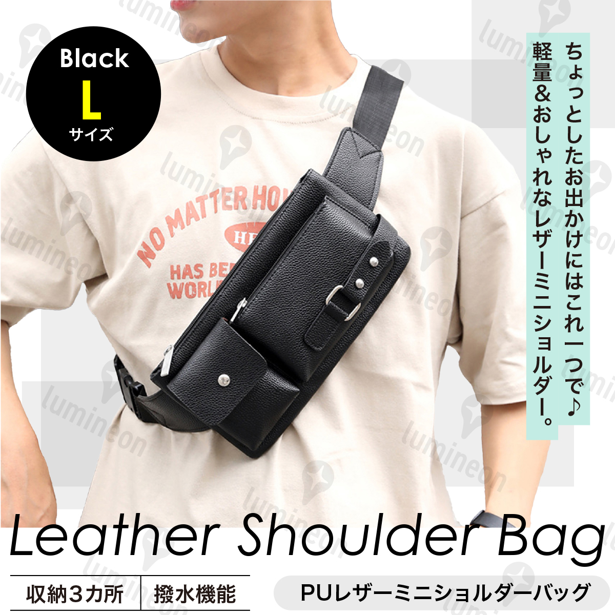 ボディ バッグ ショルダー スマホ ポーチ ウエスト メンズ レザー 大容量 小物入れ おしゃれ 斜め掛け 肩掛け ヒップバッグ 黒 g176ab