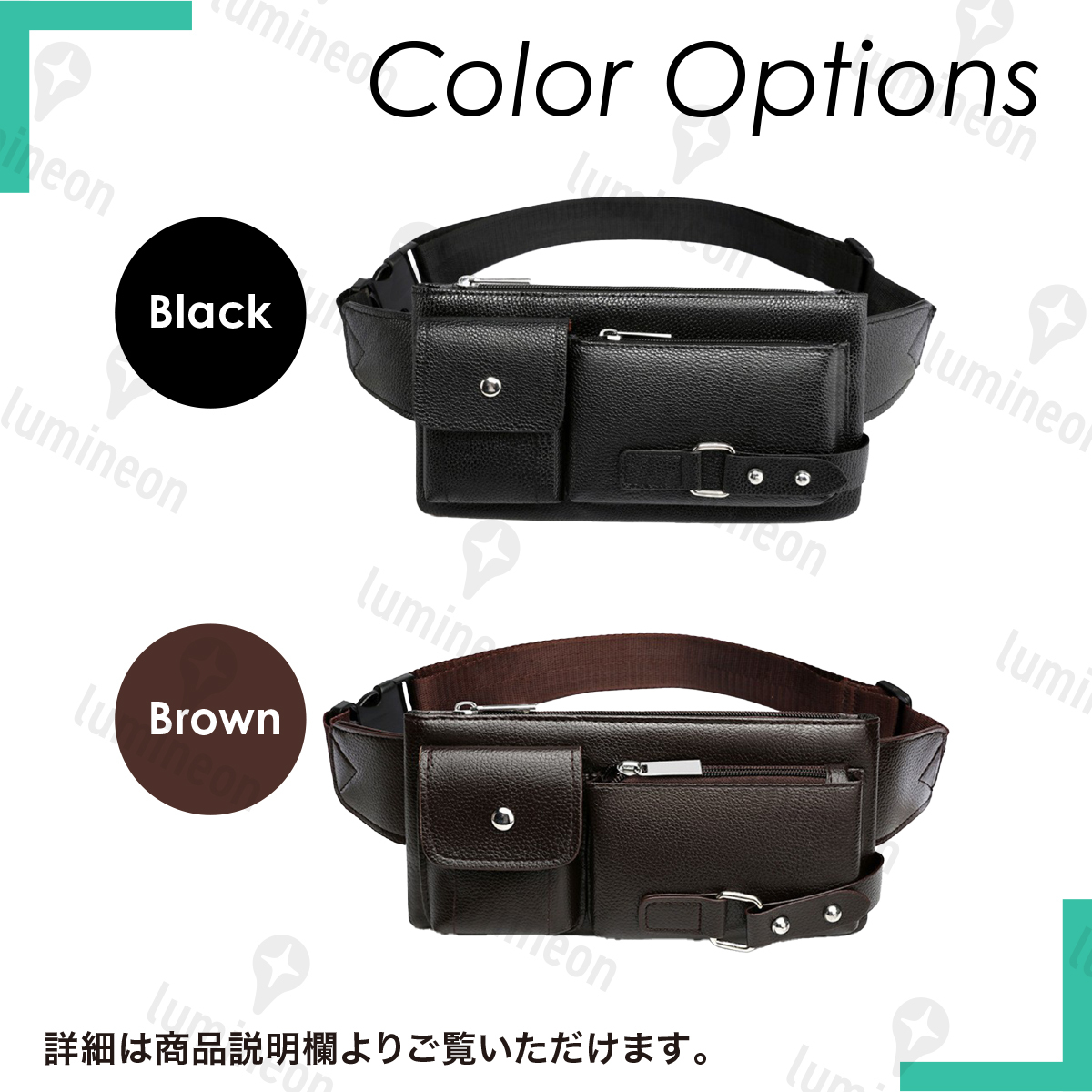 ボディ バッグ ショルダー スマホ ポーチ ウエスト メンズ レザー 大容量 小物入れ おしゃれ 斜め掛け 肩掛け ヒップバッグ 黒 g176ab 1