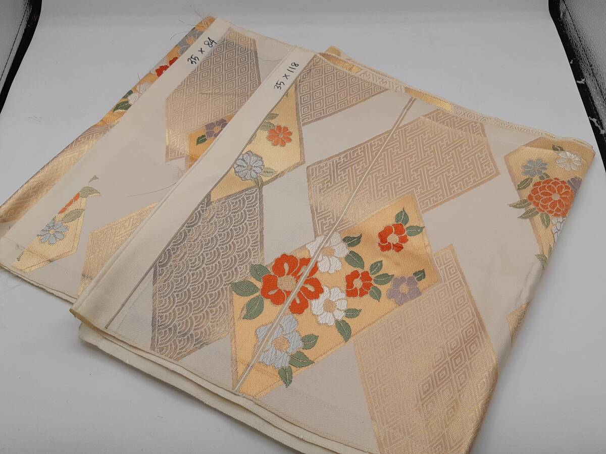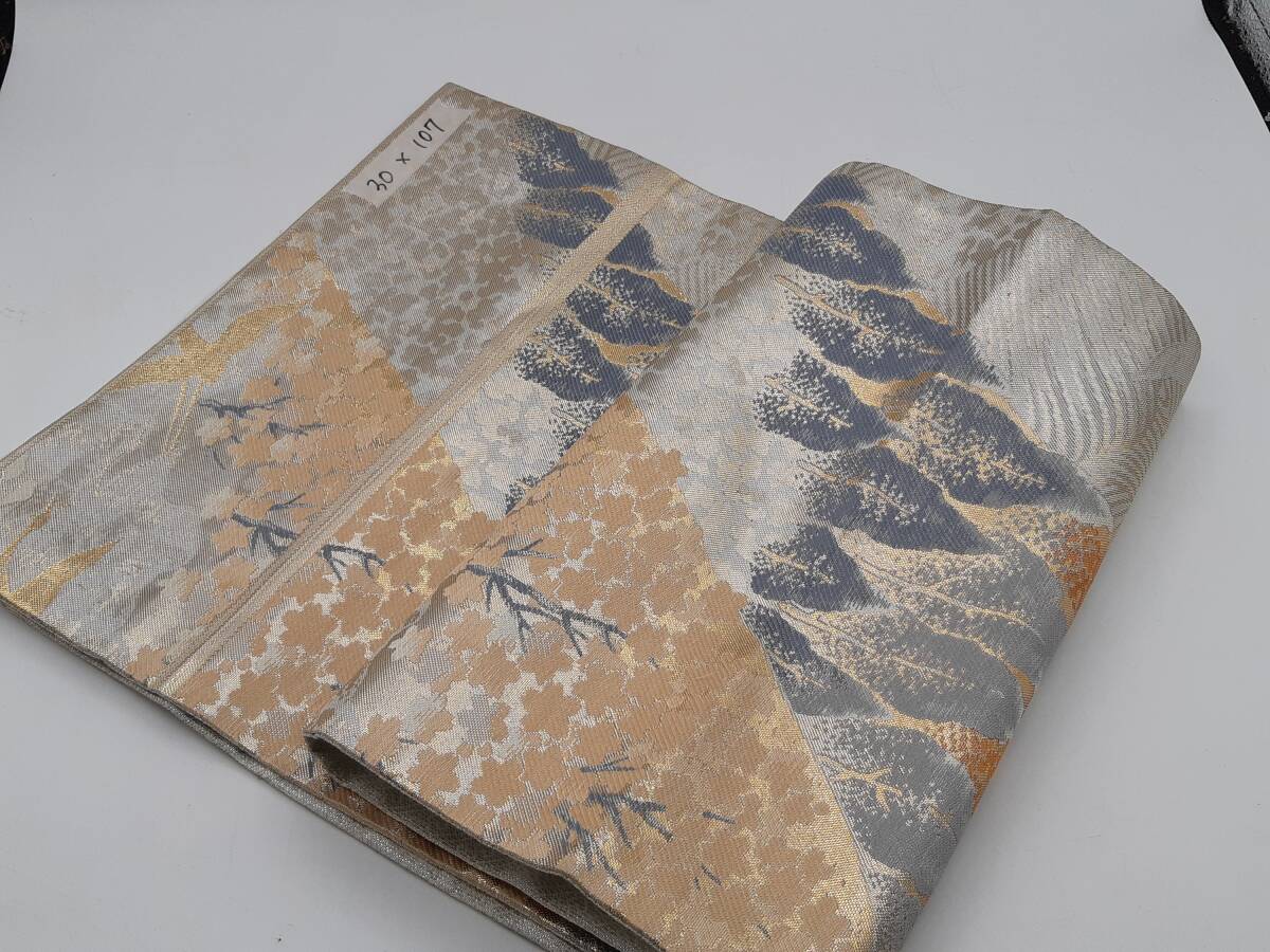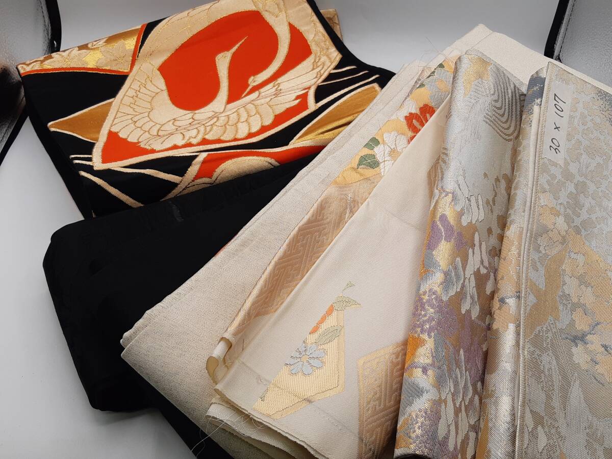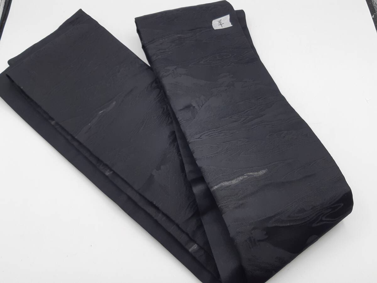 【管⑫】着物 帯 黒 金 銀 和装小物 和柄 リメイク素材 在庫セール