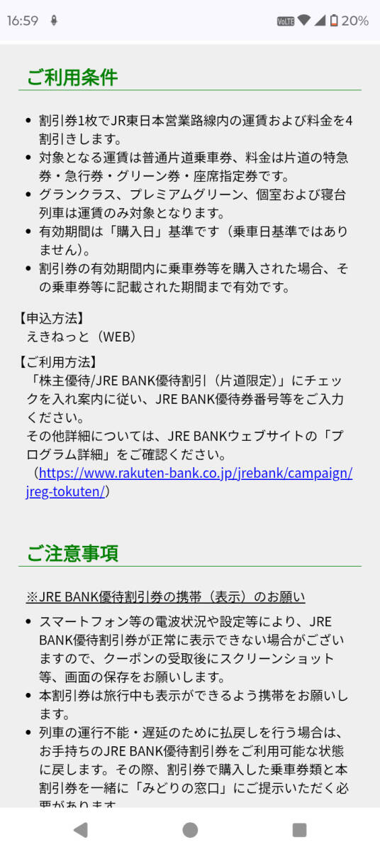 JR東日本 40%割引優待券(JRE BANK特典)2回分(2日間または往復など)