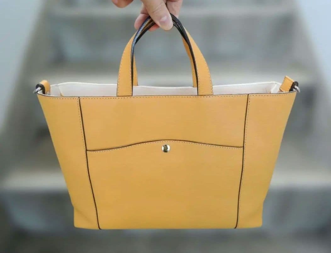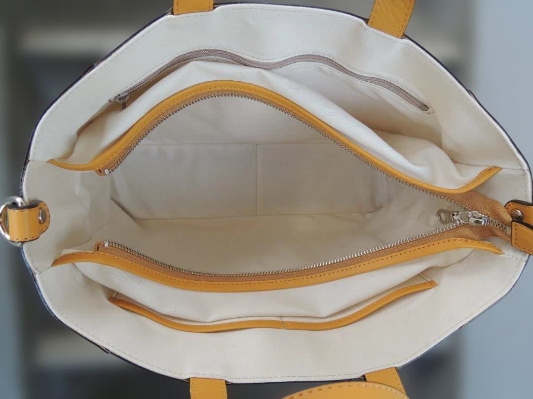 サイズは、約横39cm(上部)33cm(下部)×縦24cm(持ち手まで34cm)×奥行9cm