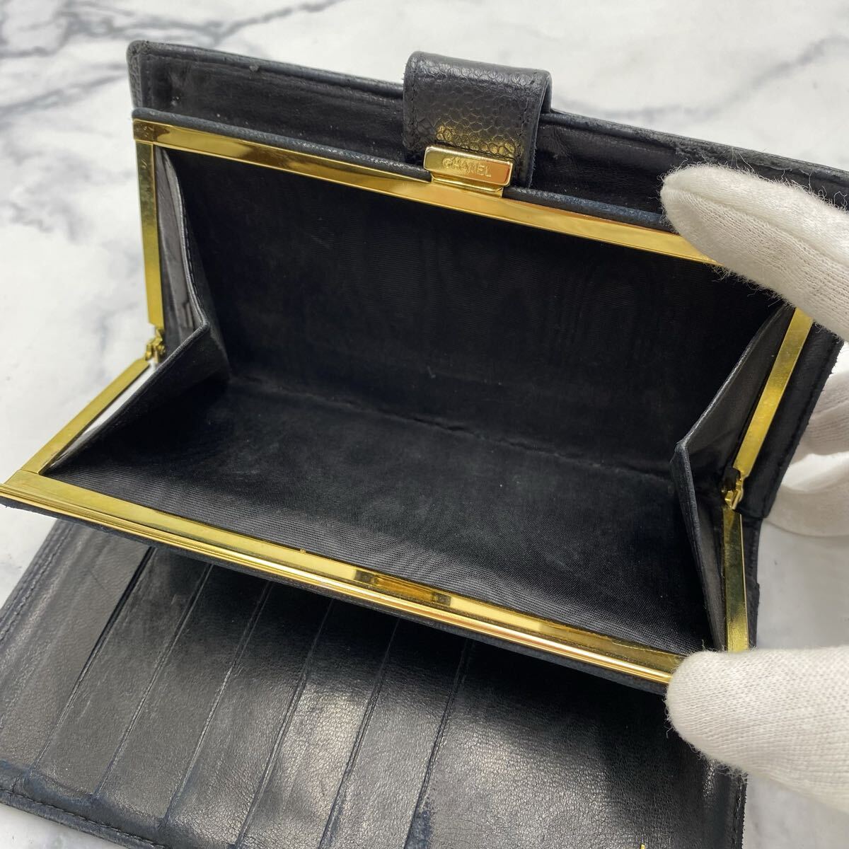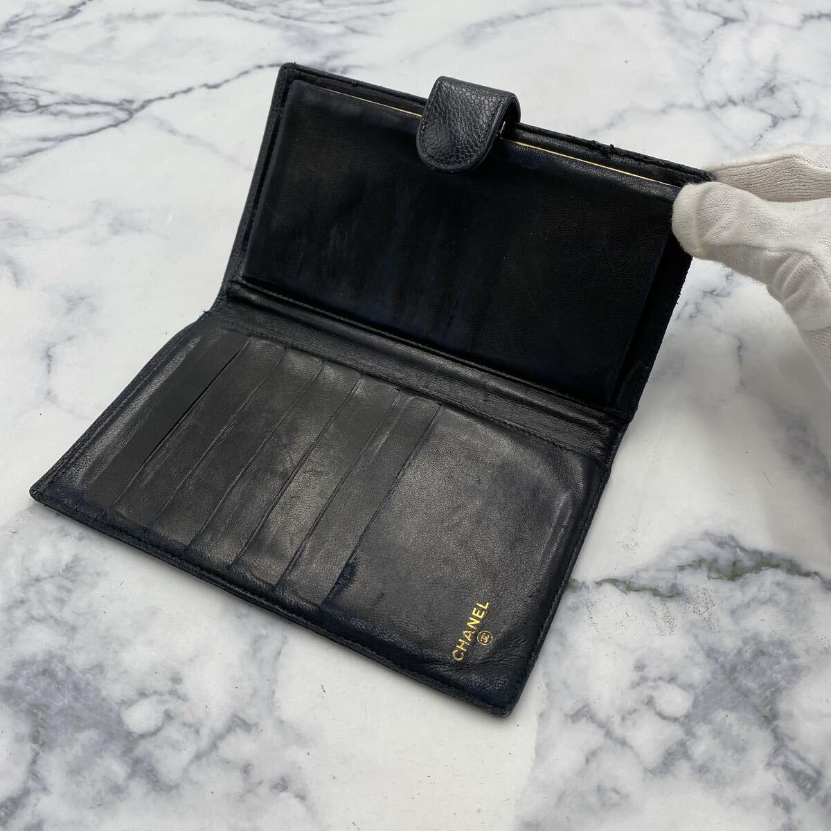 ・CHANEL/シャネル ココマーク キャビアスキン 二つ折り 長財布