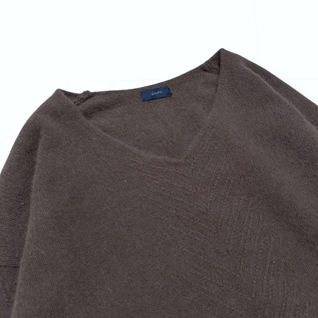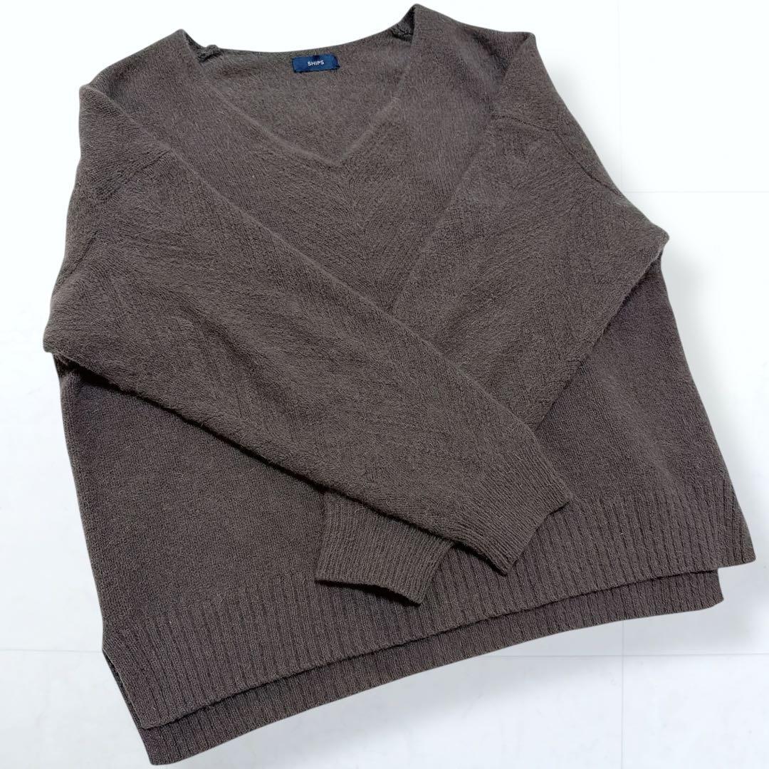 ふわふわとした素材がかわいらしい、ゆったりしたVネックニット。