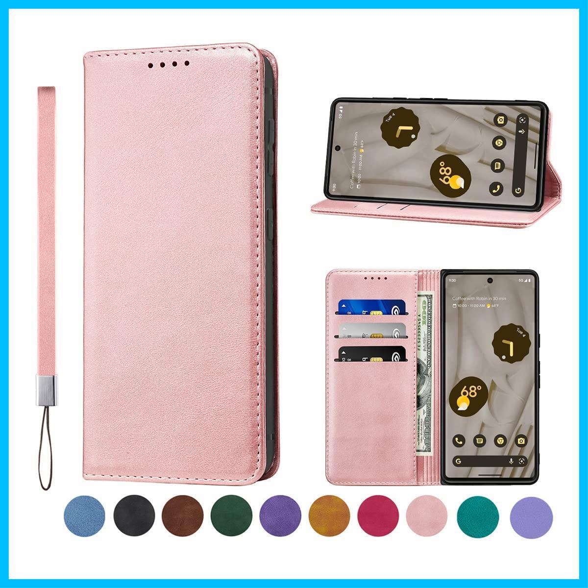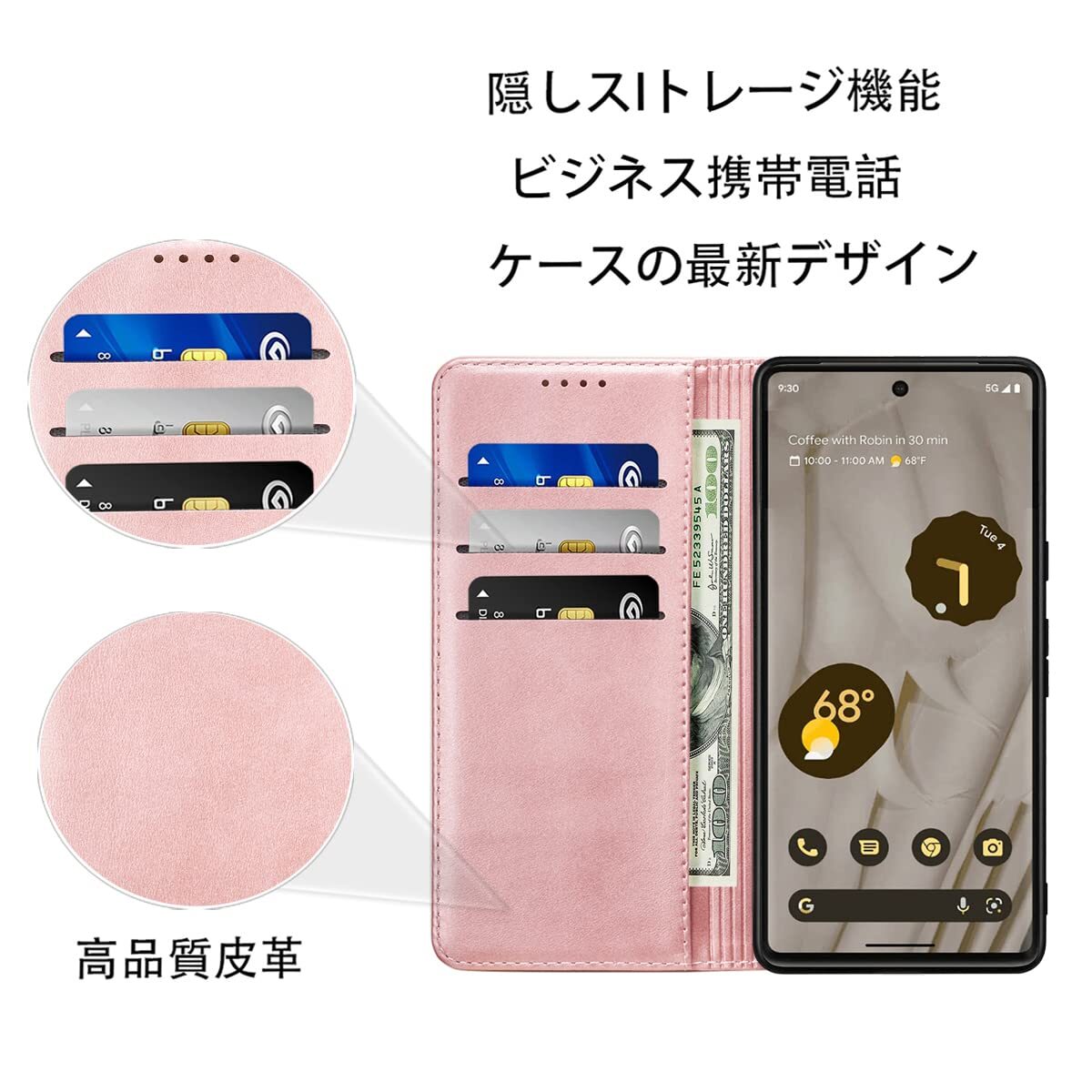 Google Pixel 9A ケース 手帳型 高質PUレザー Pixel 9A ケース Google Pixel 9A カバー ルピクセル7 ケース 手帳型 耐衝撃 内蔵マグネット開閉式 ベルトなし スマホケース おしゃれ カードポケット スタンド機能 便利 スプラット同梱 携帯ケース(ピンクゴールド)
