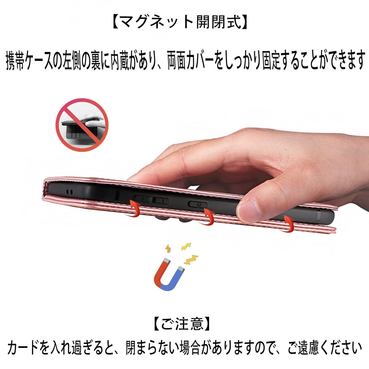【カードポケット付き】:財布型ケースとして、名刺やお札などを入れるカードポケットがつき、ちょっとしたお出かけにもスマホケース一つでOK!日常生活に便利です。ただし、カードを入れ過ぎると、閉まらない場合がありますので、ご遠慮ください。