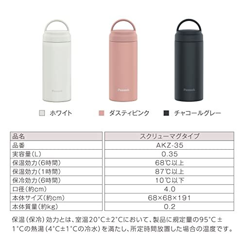 ピーコック 水筒 ステンレス ボトル スクリューマグボトル (ハンドル付き) 保温 保冷 350ml ホワイト AKZ-35 W