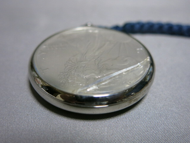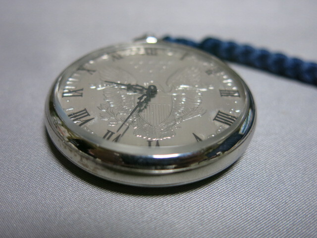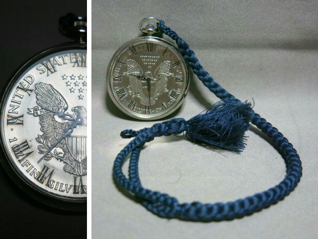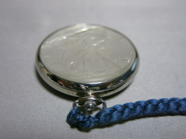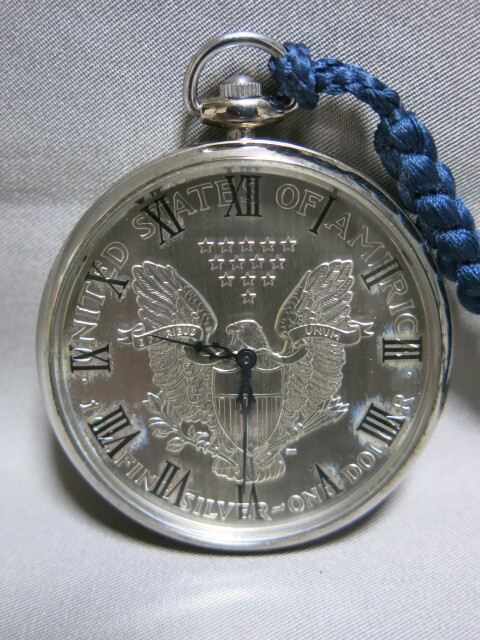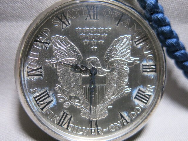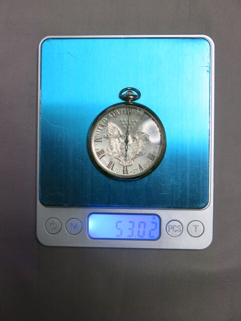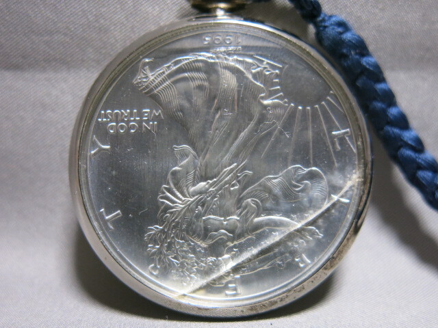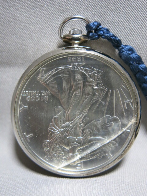 懐中時計「1995年 イーグル銀貨 LIBERTY 1oz FINE SILVER-ONE DOLLAR クオーツ 2針 コインウォッチ 懐中時計 電池交換 稼働品 SV999 総重量53.0g」自由の女神 ウオーキングリバティー