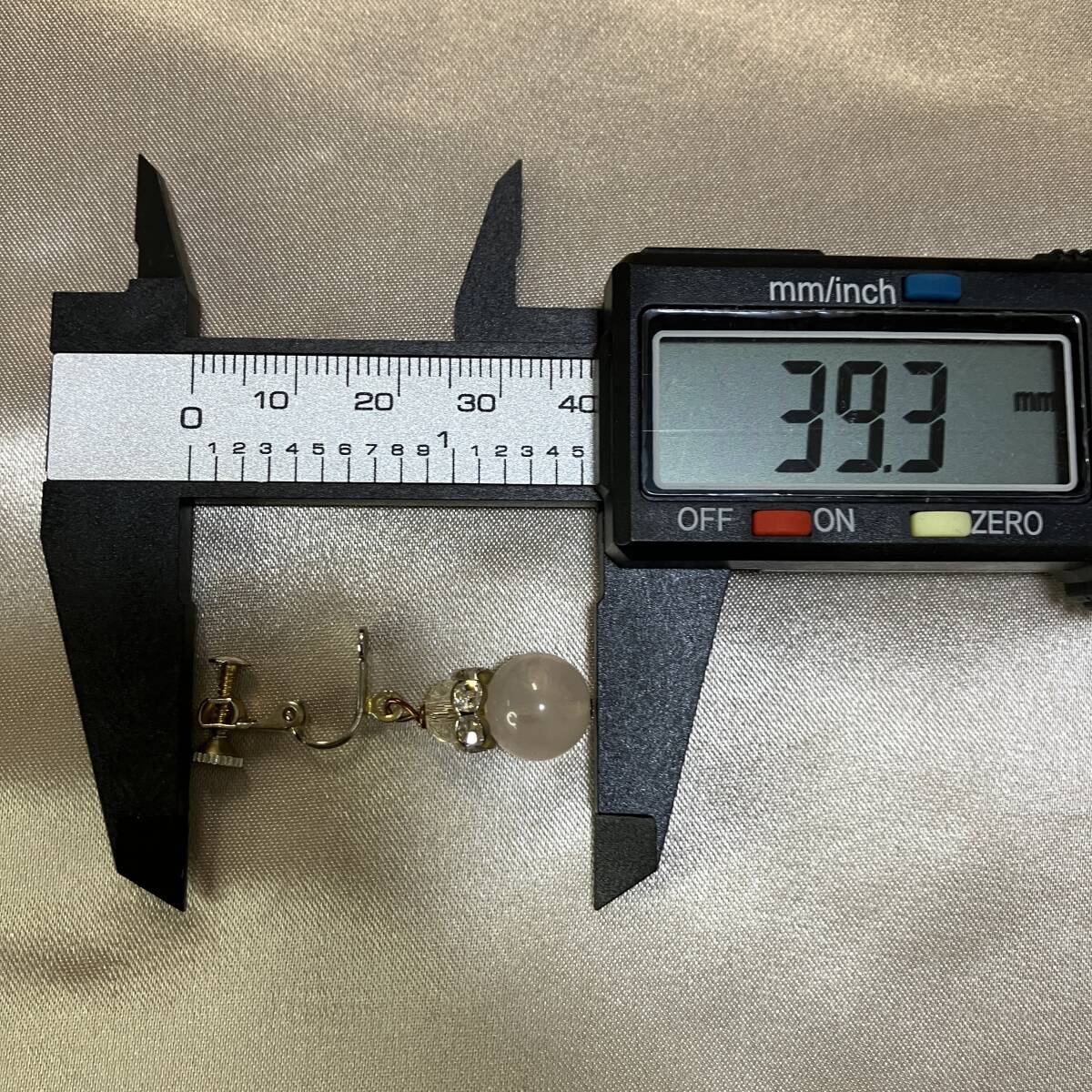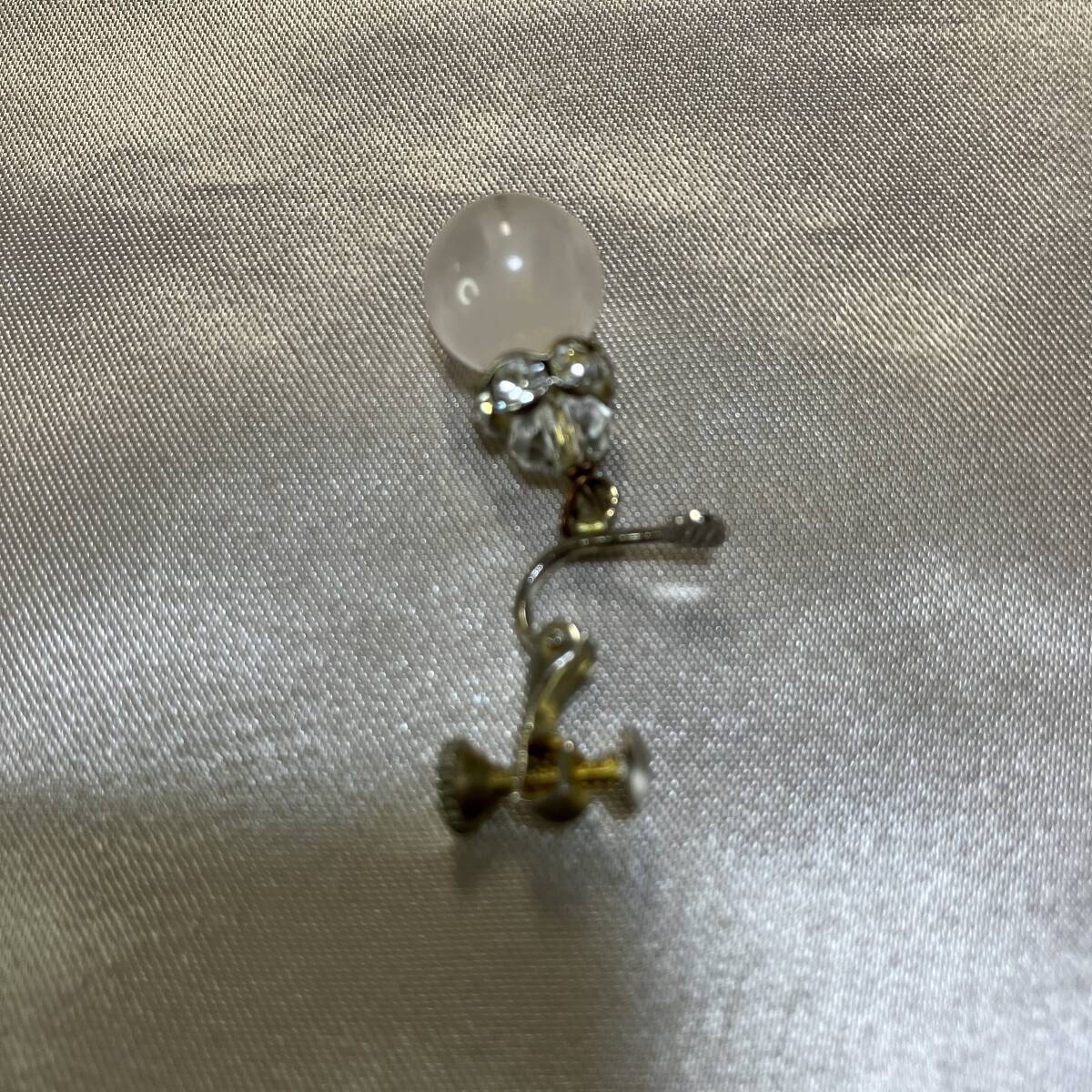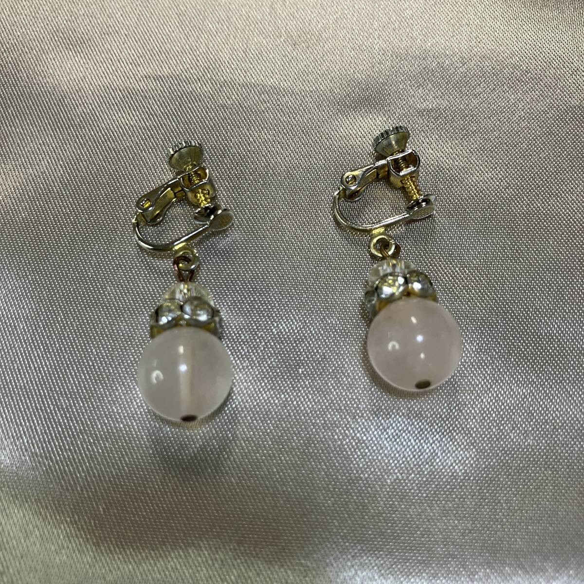 【一点もの】 ローズクォーツ 天然石 ラインストーン ドロップ イヤリング ネジバネ式 ペア 中古 良品