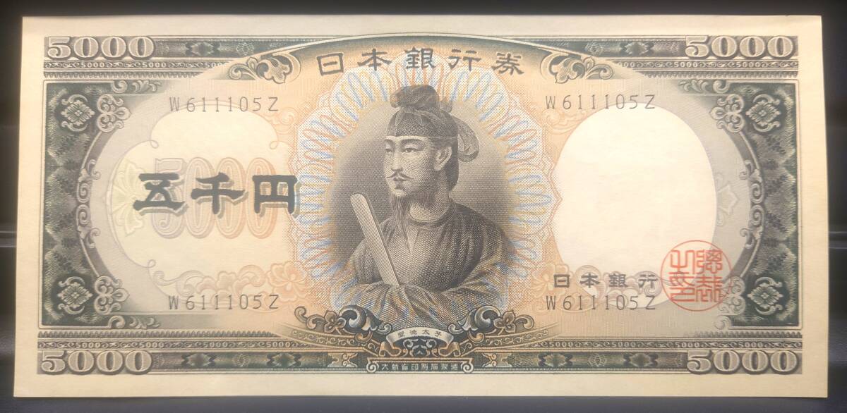 ・【ピン札 W611105Z】 聖徳太子 5,000円札 旧五千円札 アルファベット1桁 アルファベット1文字 日本銀行券 紙幣