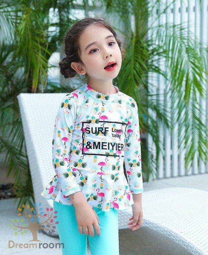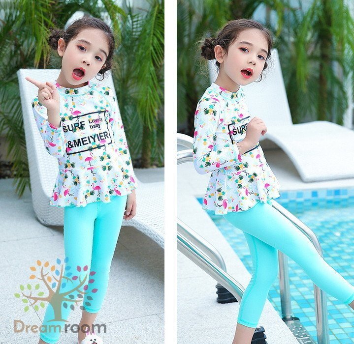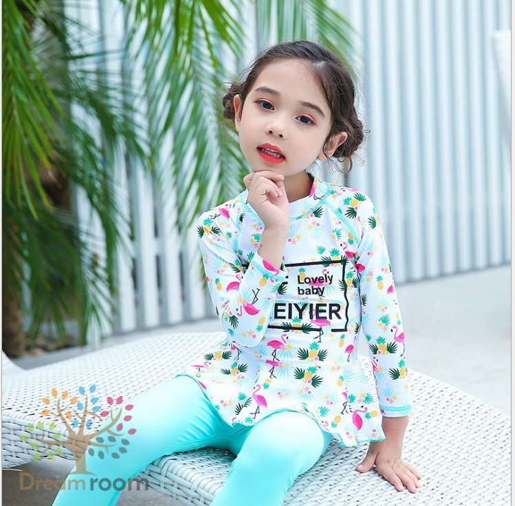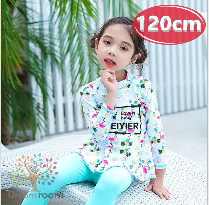 kids 2点セット フラワー 小花柄 ブルー ラッシュガード+レギンスパンツ セットアップ女の子 【120cm】 K-238 スイムウェアー