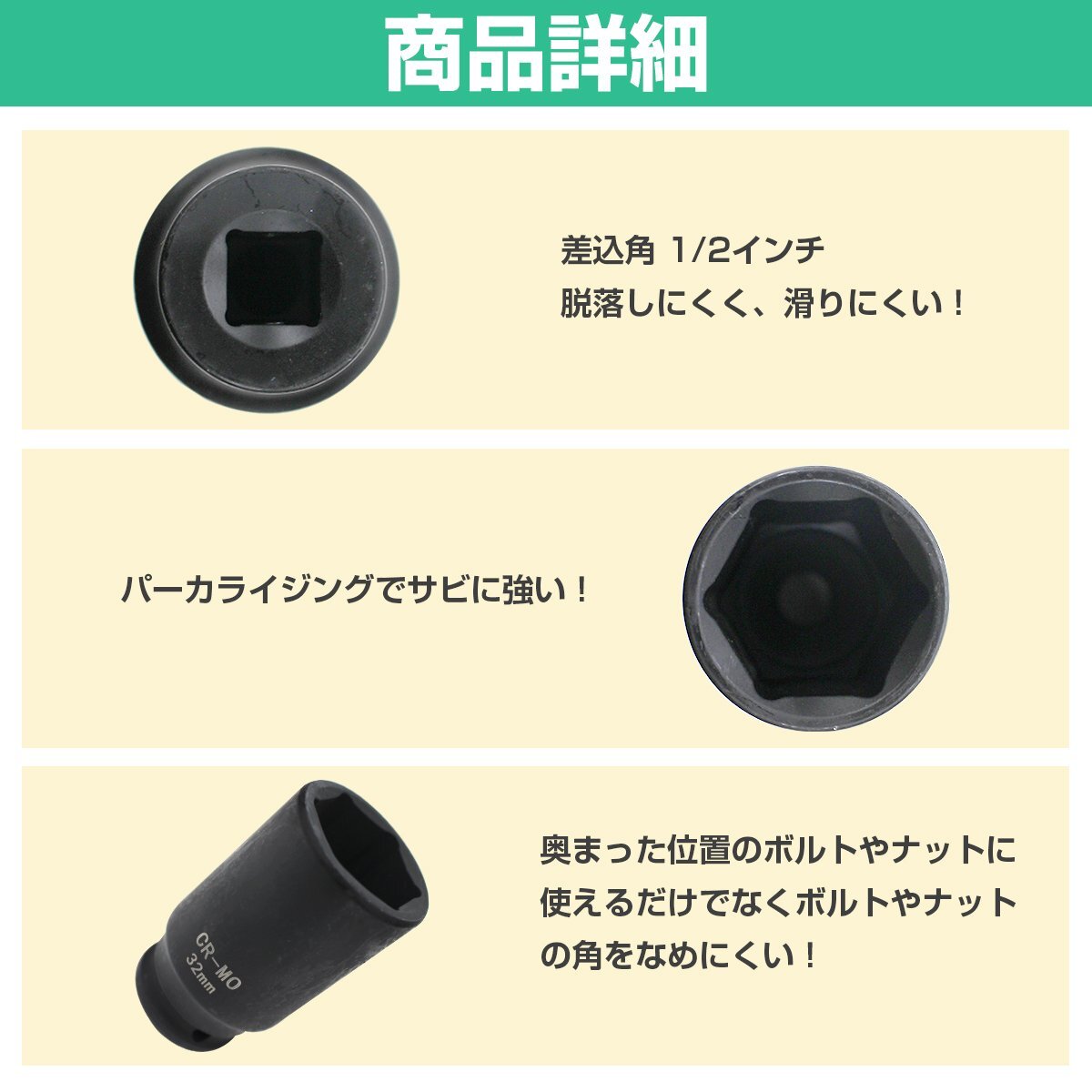 【新品即納】インパクト ディープソケット レンチ 差込角 1/2 12.7mm 16本 セット エア 工具 ロング ソケット ケース付き エアー ツール