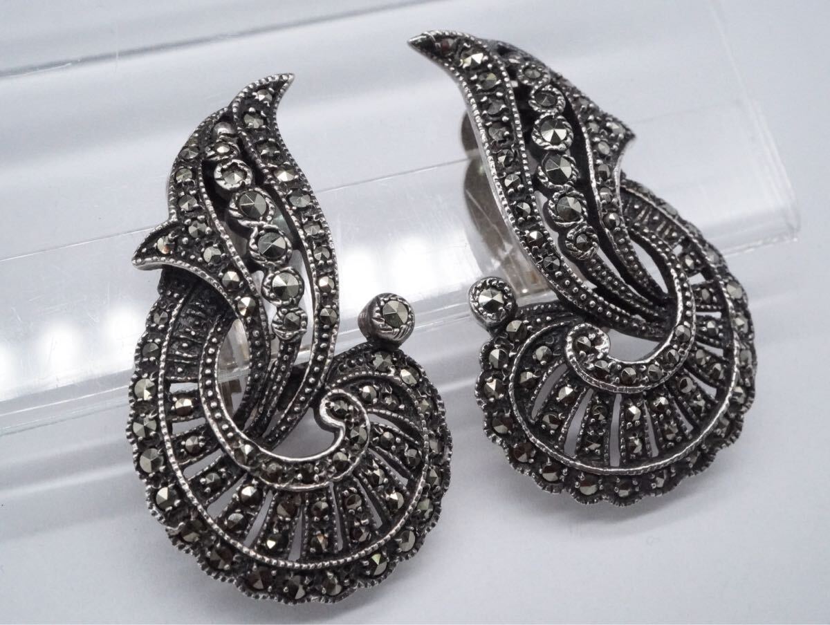 【368】マーカサイト SILVER シルバー STERLING イヤリング アクセサリー TIA